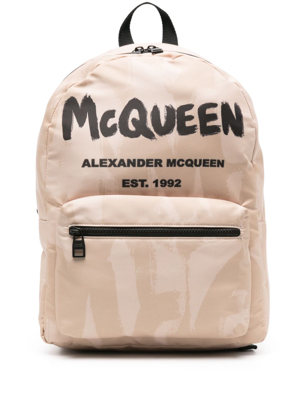 logo-print shoulder bag from Alexander McQueen featuring black, blue, leather trim, logo print to the front, single shoulder strap, concealed magnetic fastening and internal slip pocket.