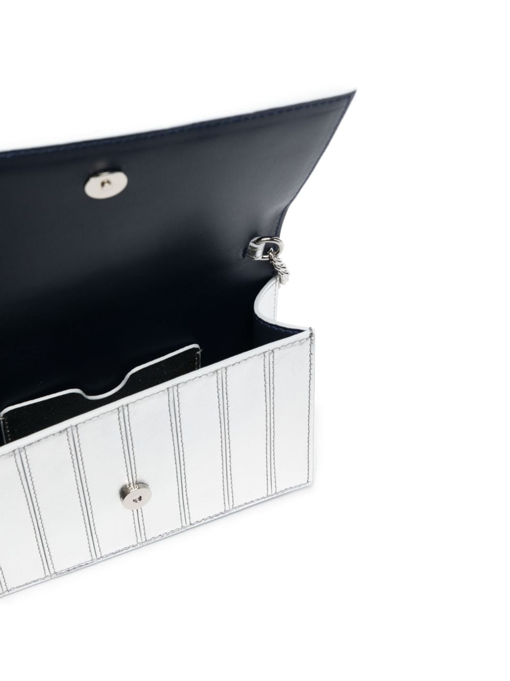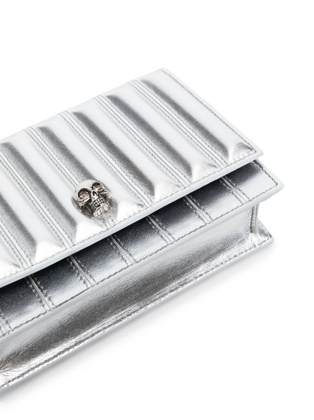 metallic-effect skull crossbody bag from Alexander McQueen featuring silver-tone, calf leather, leather lining, silver-tone hardware, metallic effect, foldover top with press-stud fastening, chain-link shoulder strap, main compartment and internal slip pocket.