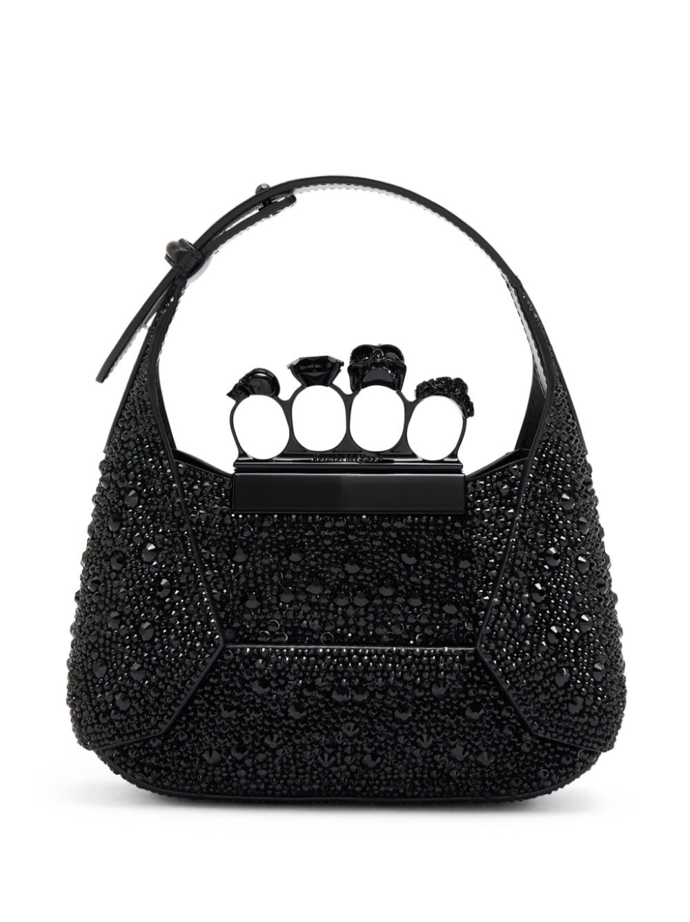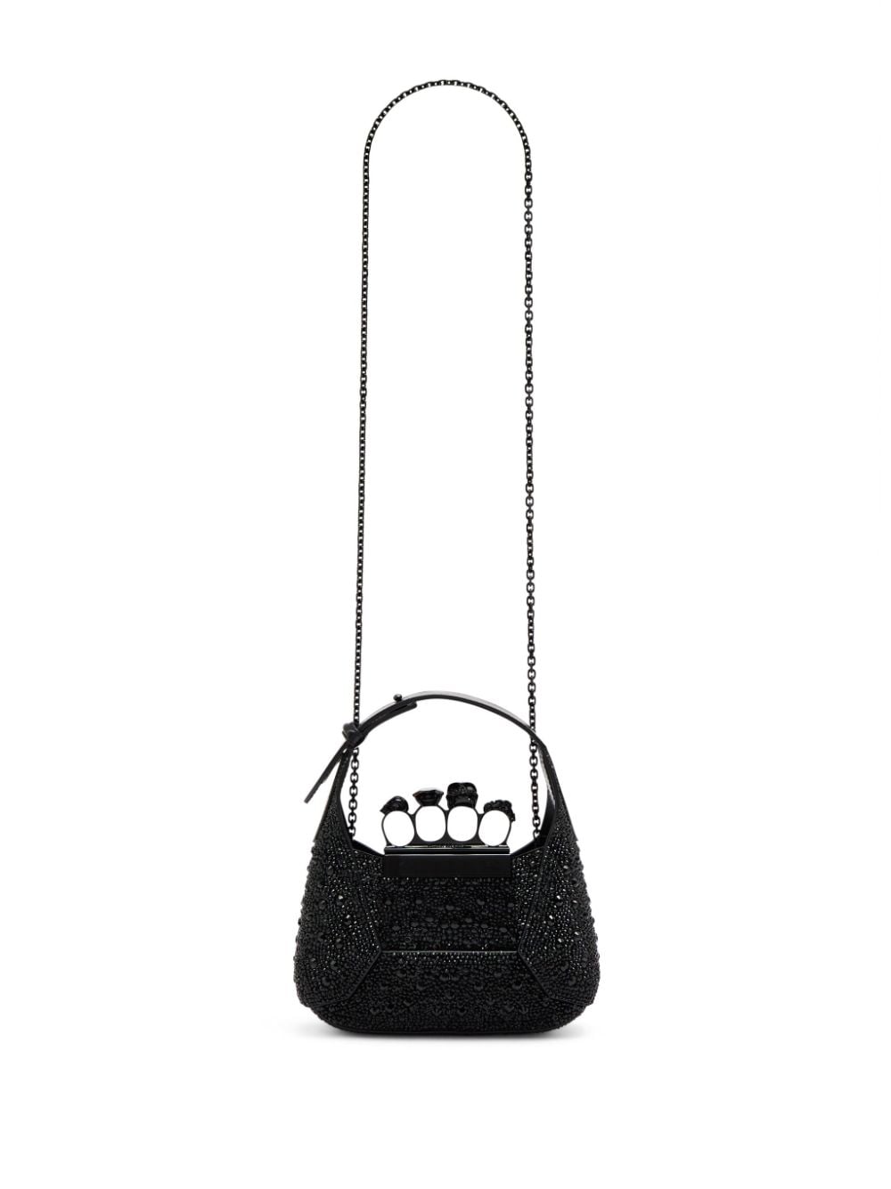 Enveloped in an array of glistening crystal embellishments, this mini crossbody bag by Alexander Mcqueen makes for a glamorous accessory. Crafted from black leather, it’s designed with the label’s signature knuckleduster detail and complemented with tonal hardware.