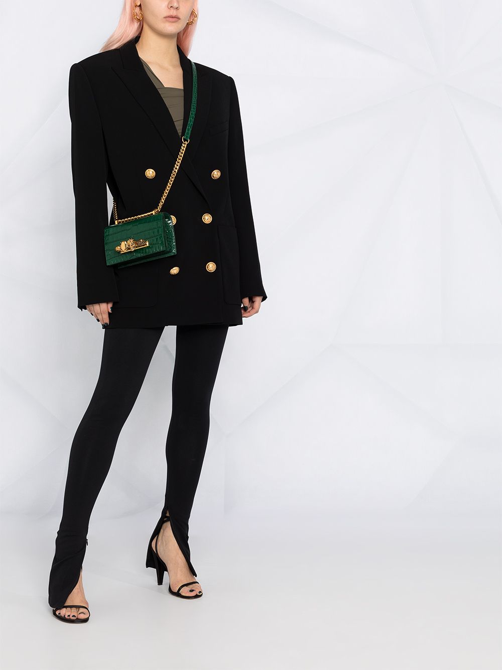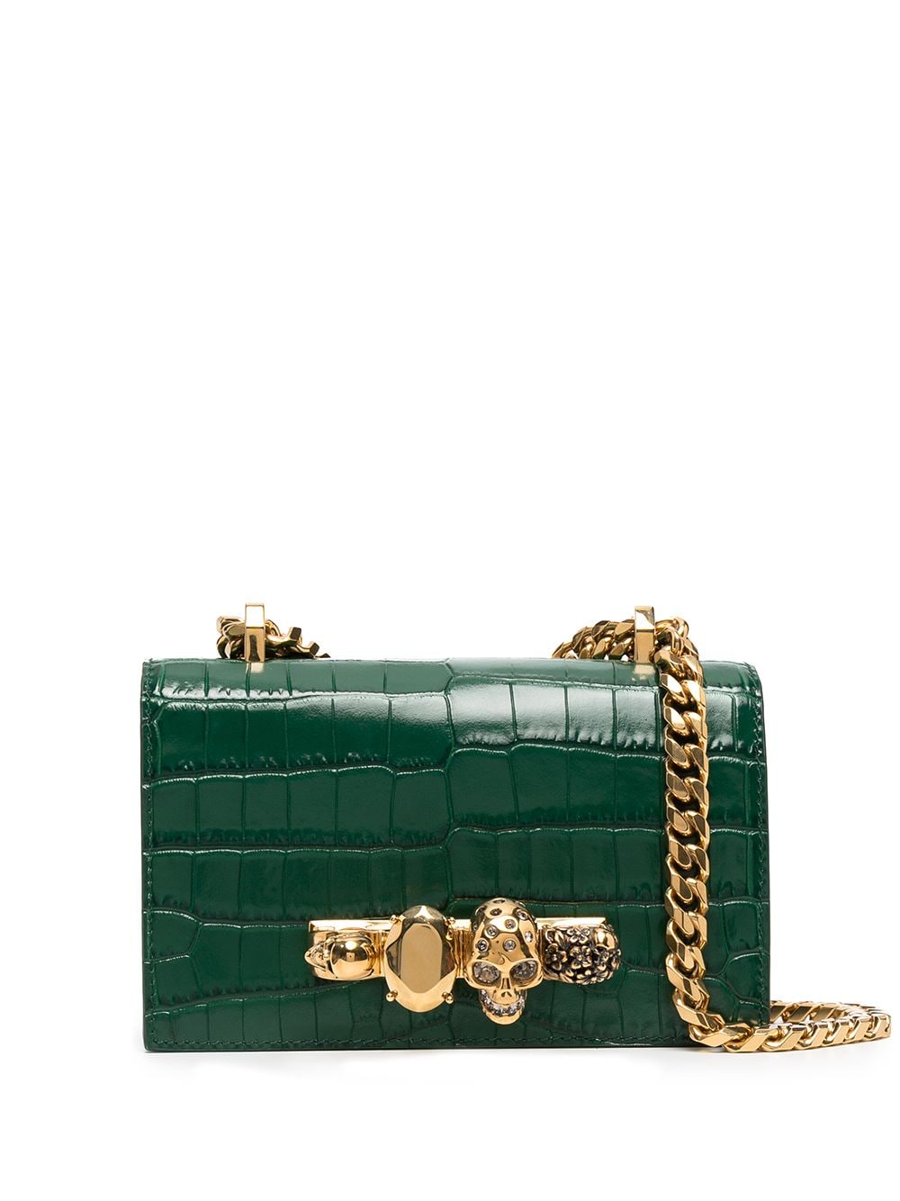 There’s no such thing as too much bling. Decorated with a four-ring embellishment encrusted with crystals, this mini jewelled satchel will make you the centre of all the attention. Thanks, Alexander McQueen.