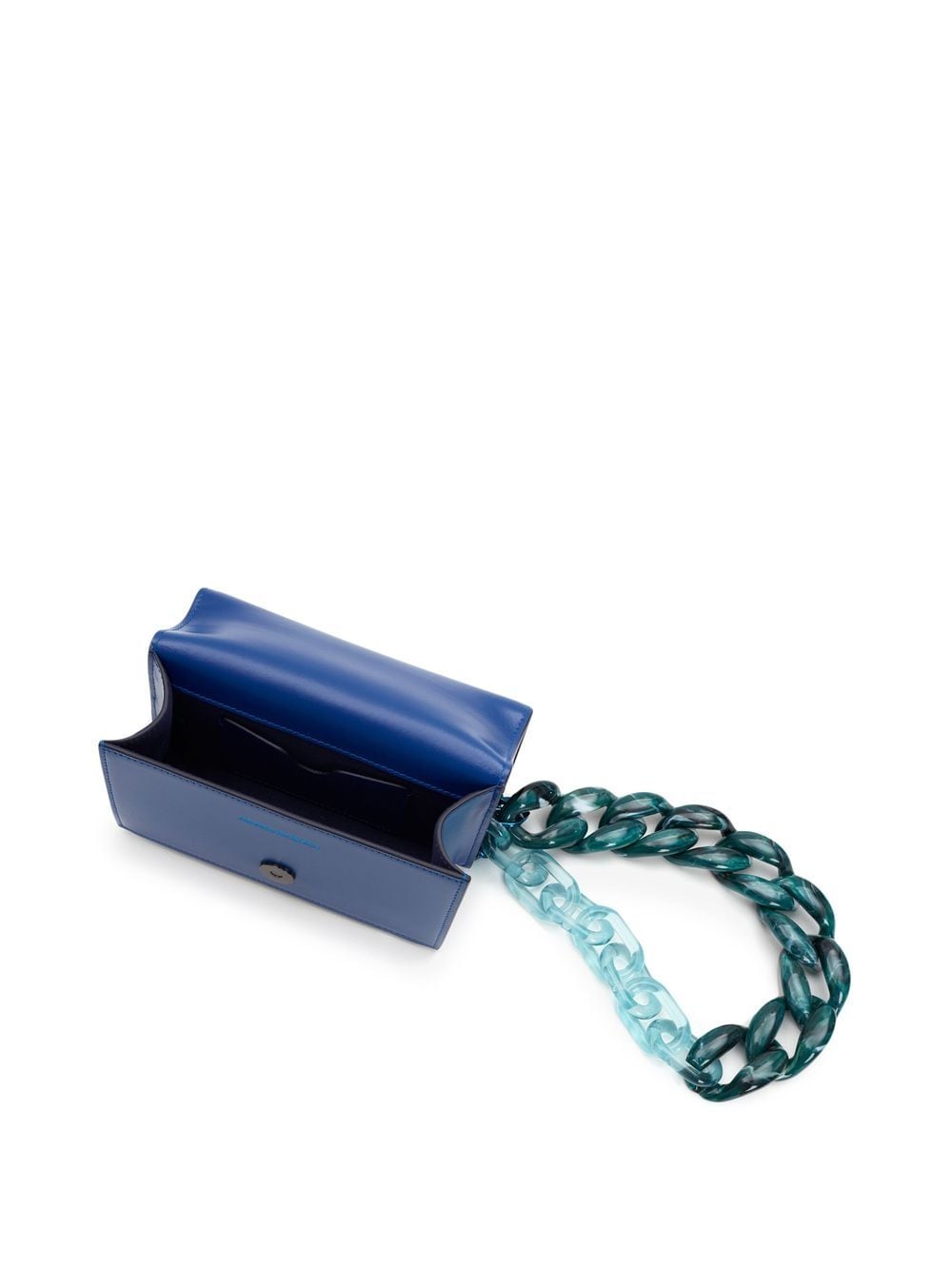 mini Jewelled skull satchel bag from Alexander McQueen featuring royal blue, multicolour, calf leather, skull appliqué, Swarovski crystal embellishment, foldover top with magnetic fastening, signature Four Ring handle, single shoulder strap and main compartment.