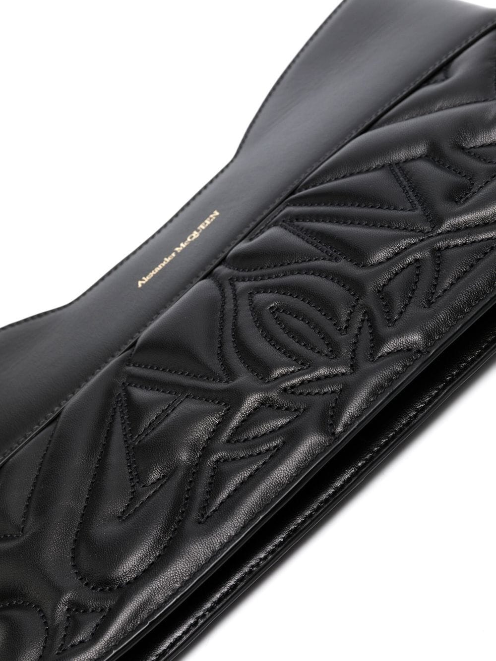 quilted leather clutch bag from Alexander McQueen featuring quilted, gold-tone logo lettering, main compartment, black and leather.
