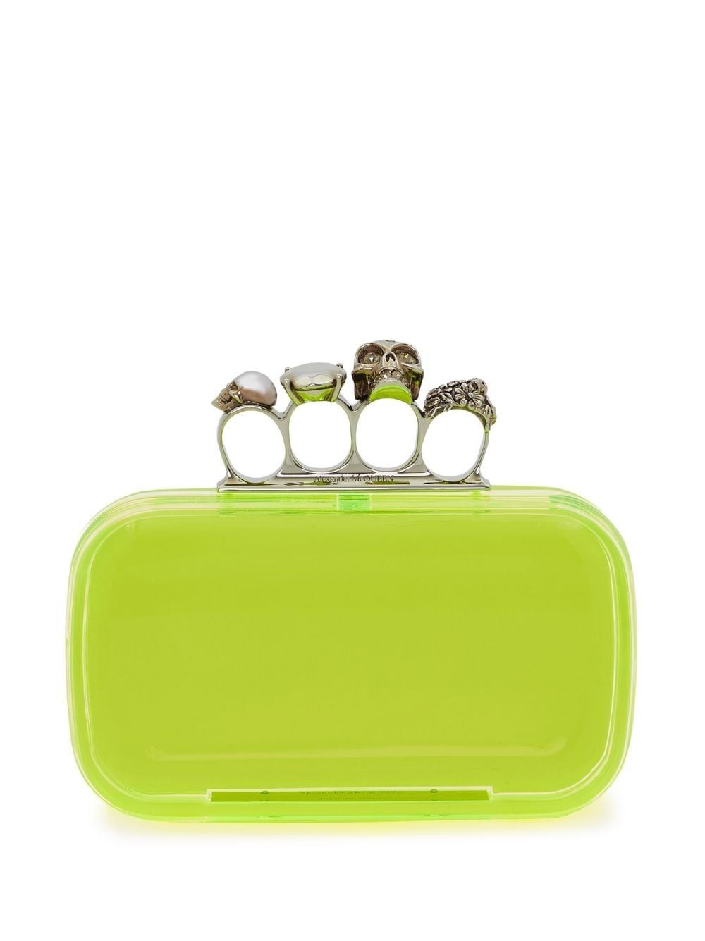 beaded knuckleduster clutch bag from Alexander McQueen featuring multicolour, lambskin, bead embellishment, sequin embellishment, knuckleduster design, silver-tone hardware and hinged.