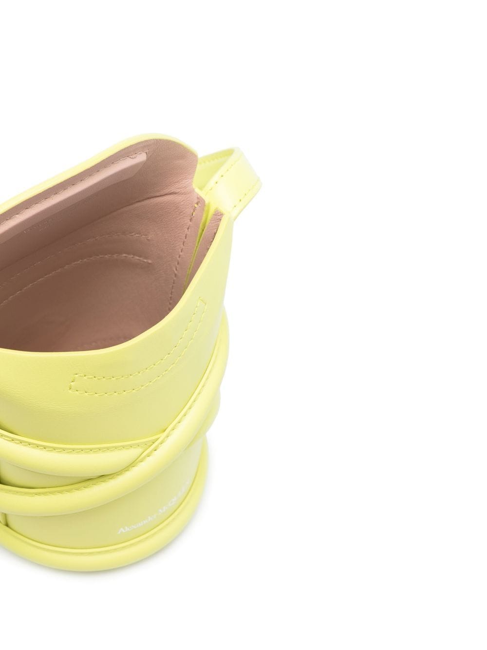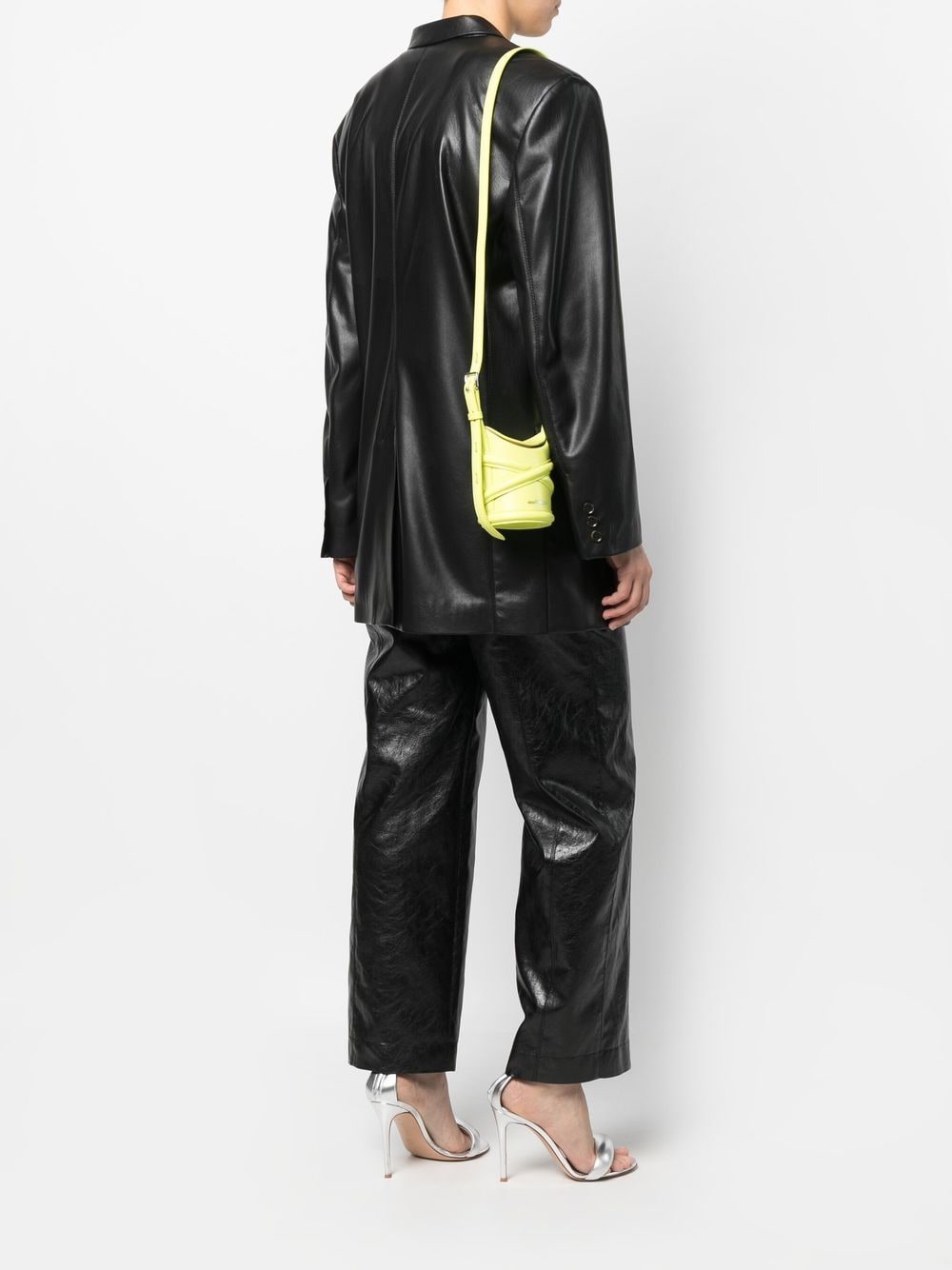 The Curve mini crossbody bag from Alexander McQueen featuring embossed logo to the front, foldover top with magnetic fastening, adjustable shoulder strap, neon yellow and calf leather.