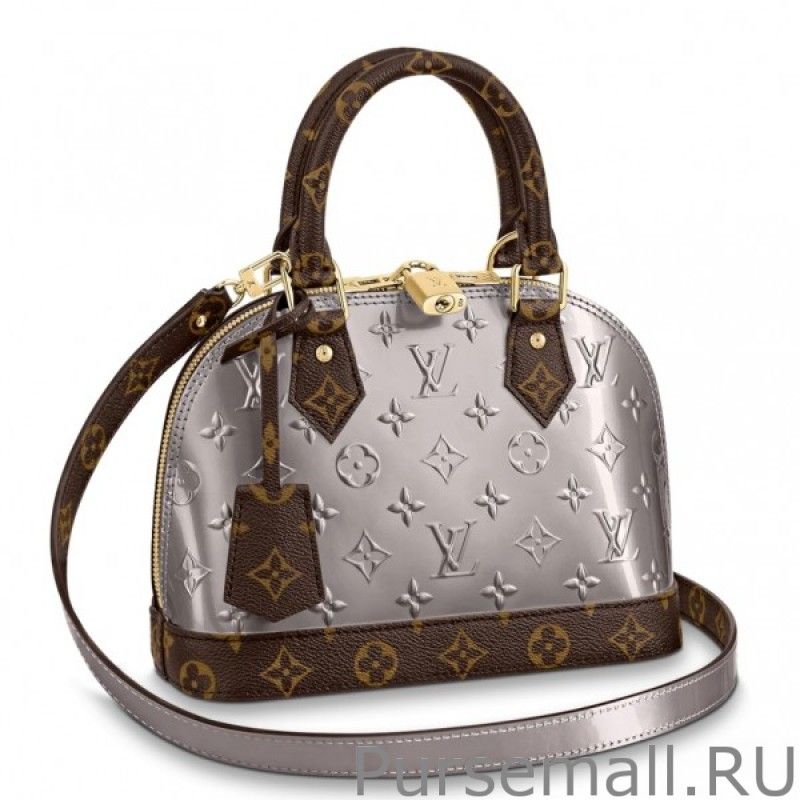 Made from stunning metallic Monogram Vernis leather, the adorable Alma BB handbag literally shimmers with style. The Monogram pattern debossed into the leather is playfully echoed by that of the Monogram canvas trim. Femininity and refinement fuse in one of the House most iconic shapes.