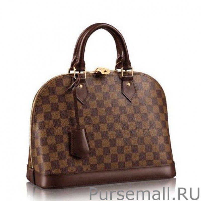 A true icon, the Alma looks chic and feminine in understated Damier canvas. Its elegant curved shape, shiny golden brass details and smooth leather trimmings embody classic city style.