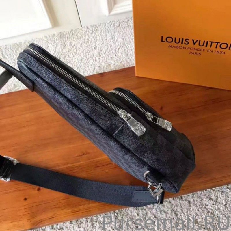 The Avenue Sling Bag in Damier Graphite canvas fits urban lifestyles perfectly: compact and sporty, with a cool and casual attitude. Its “smart” strap adjusts for left- or right-side carry. The body-friendly shape and double zip keep valuables close and secure.