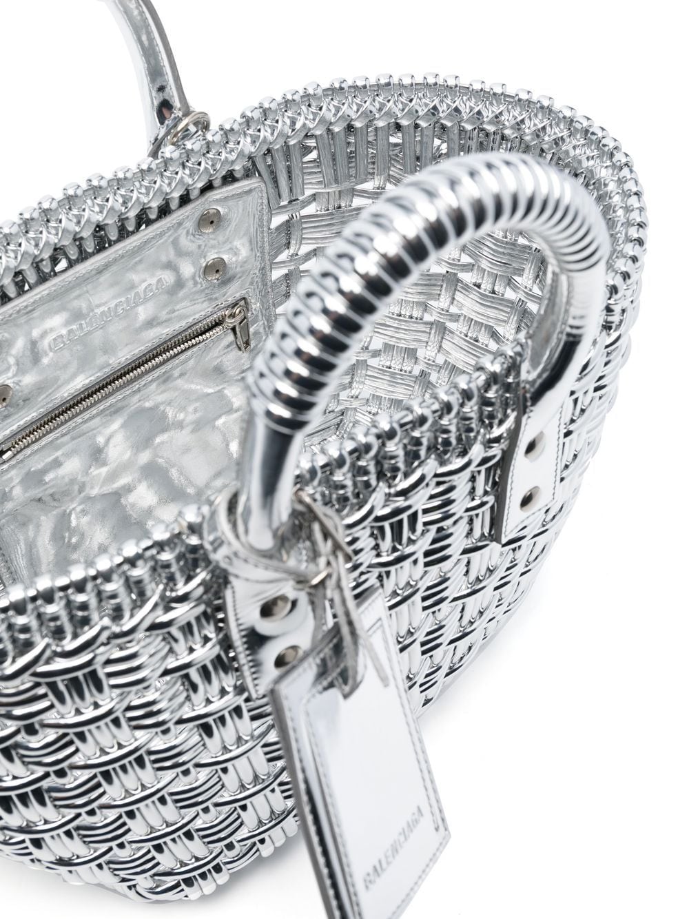 Balenciaga’s signature avant-garde approach to minimalist style is highlighted on this SS23 collection tote bag. Featuring a woven construction and logo tag at the side, the silver-tone finish of the accessory creates an eye-catching effect.