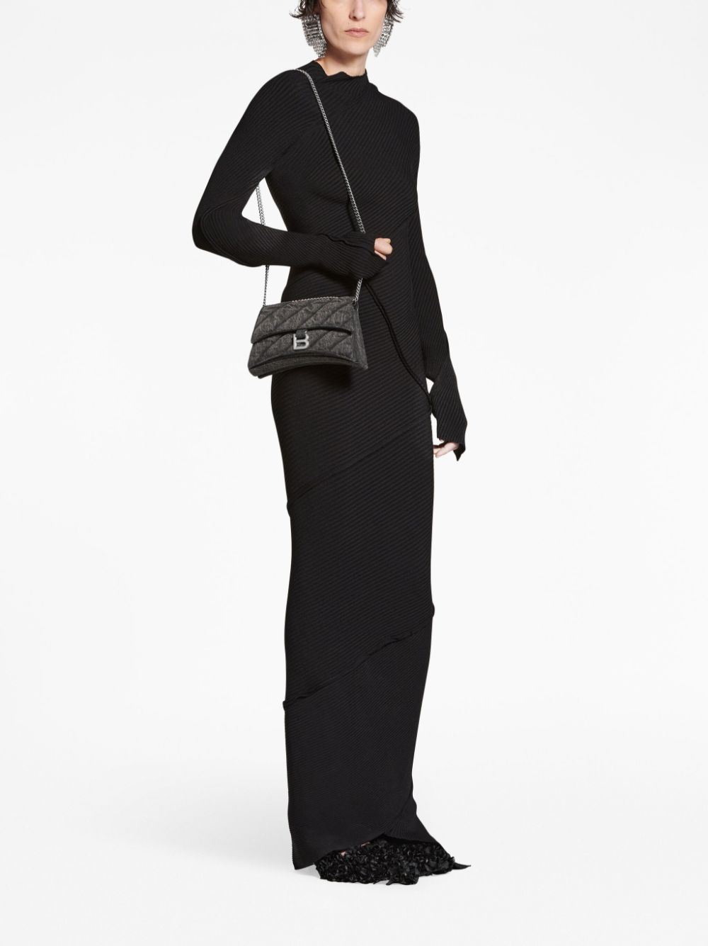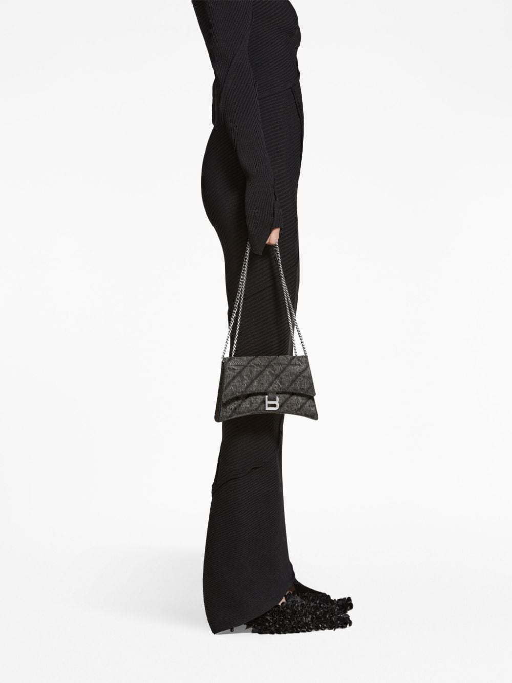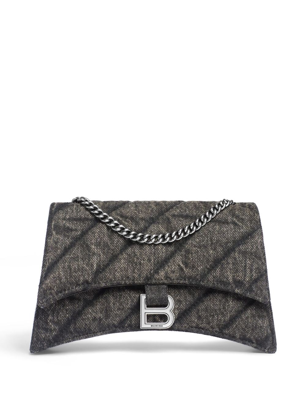 Balenciaga’s Crush bags are constantly being re-invented, and this grey version introduces a washed, quilted denim construction. All other elements remain steadfast to the style, including the curvilinear base, B logo hardware and chain straps.