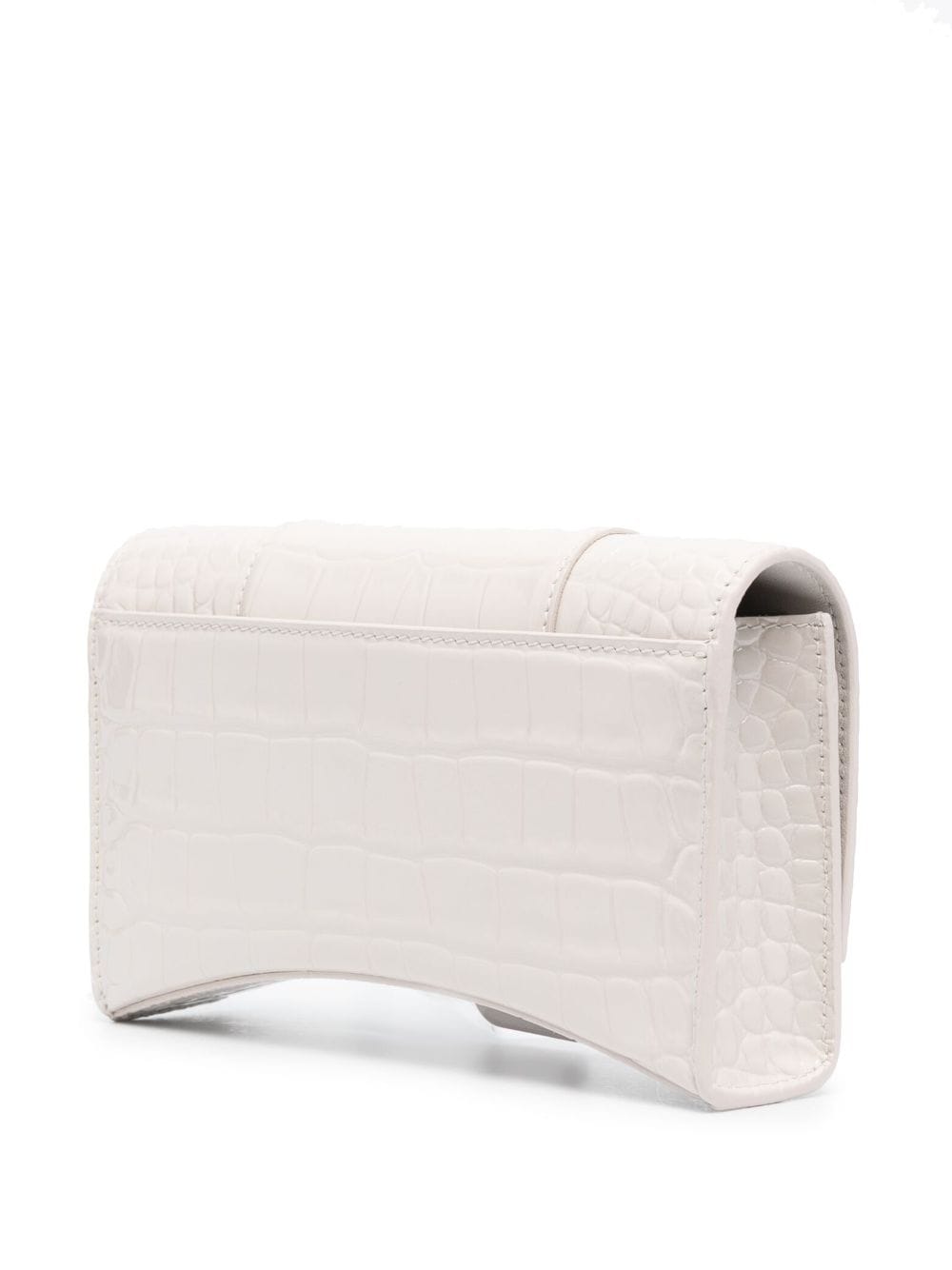 Defined by its signature curved silhouette and the unmistakable B-logo plaque at its centre, Balenciaga’s Hourglass chain wallet benefits from a leather construction with an embossed crocodile effect for SS23. Fitted with a detachable chain-link shoulder strap, this versatile accessory can either be carried by hand or worn crossbody.