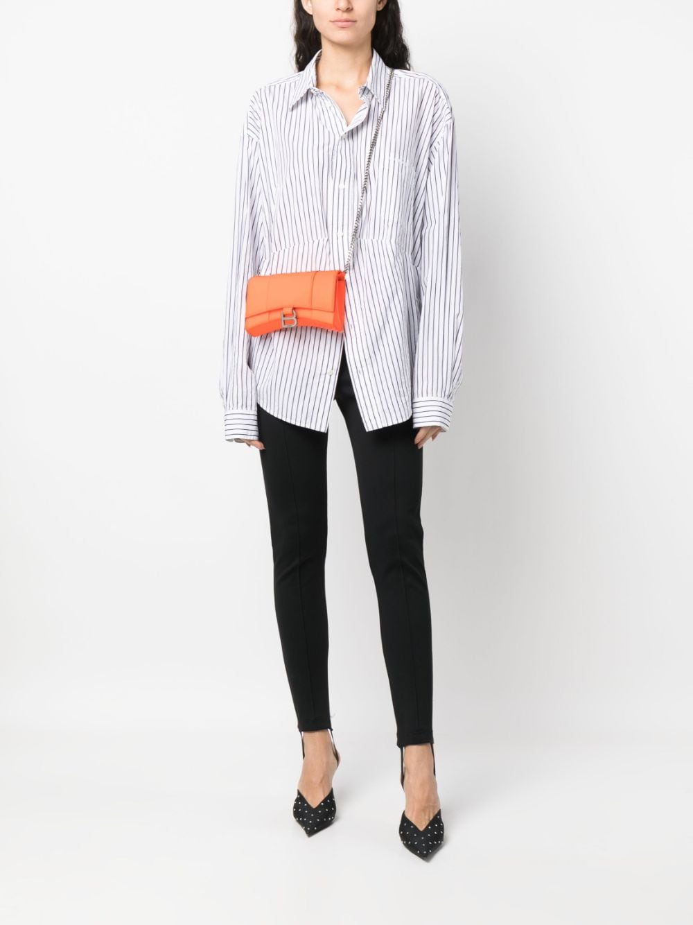 Inspired by outerwear silhouettes first introduced by founder Cristóbal Balenciaga, the Hourglass bag has become one of the brand’s most iconic shapes. This version of the sculpted wallet-on-chain comes in smooth orange leather with a signature B logo plaque.