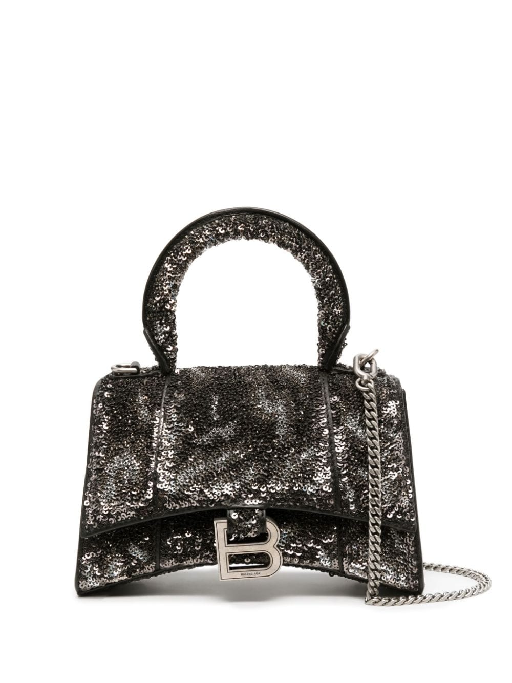 Balenciaga updates its Hourglass XS bag with scores of sequins that catch the light from all angles. The silver-tone ‘B’ monogram matches the detachable chain-link shoulder strap.