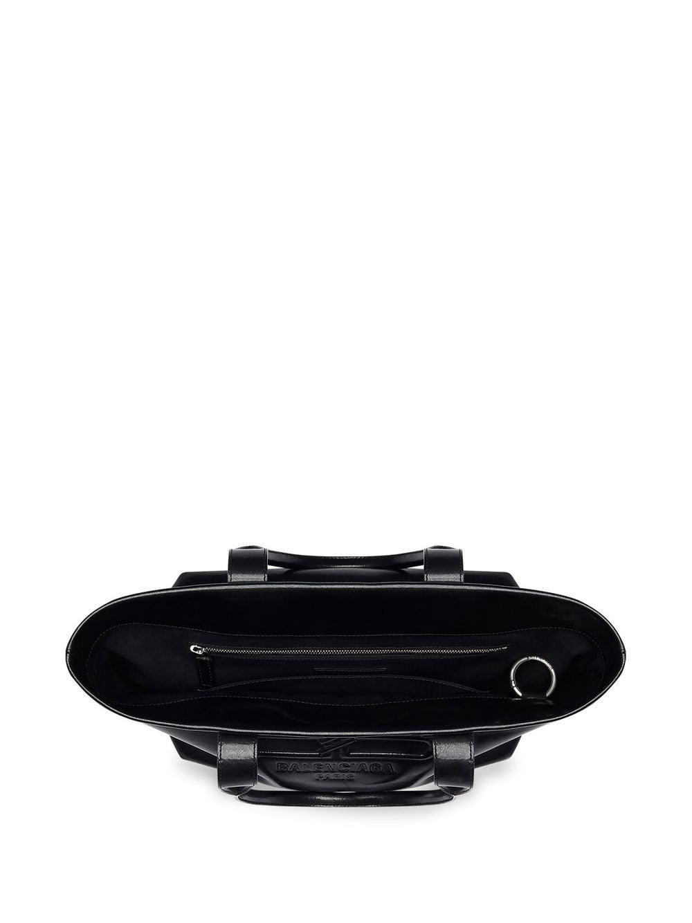jumbo calfskin tote bag from BALENCIAGA featuring black, calf leather, embossed logo to the front, top zip fastening and two rounded top handles. Conscious: We’ve partnered with Good On You – an ethical agency that rates how sustainably brands perform. This item comes from a brand that performs well in relation to their impact on the planet..