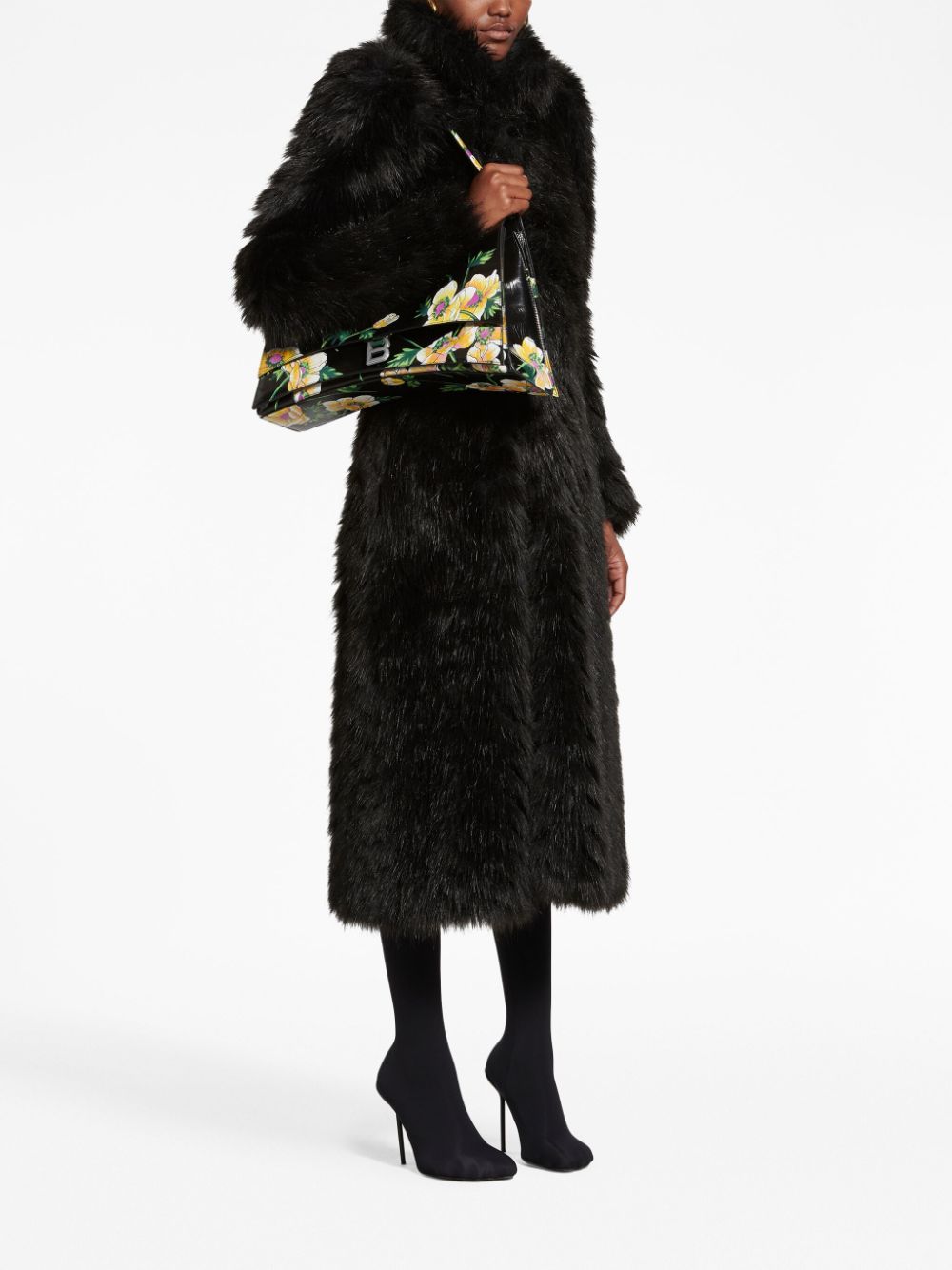 Defined by its curved base and structured silhouette, this iteration of Balenciaga’s iconic bag is crafted from patent leather and made unique with an elegant floral print. A silver-tone ‘B’ logo completes the accessory.