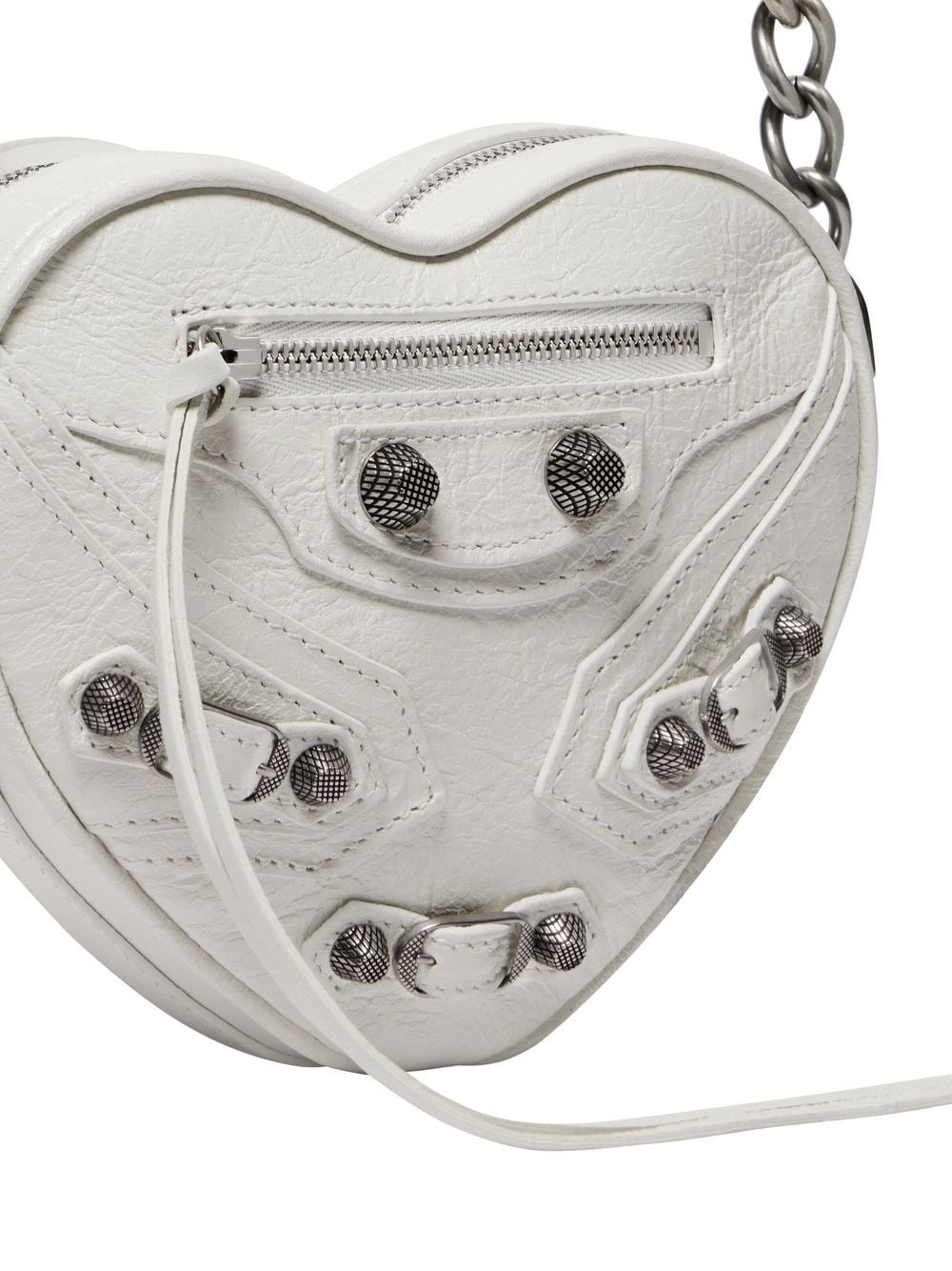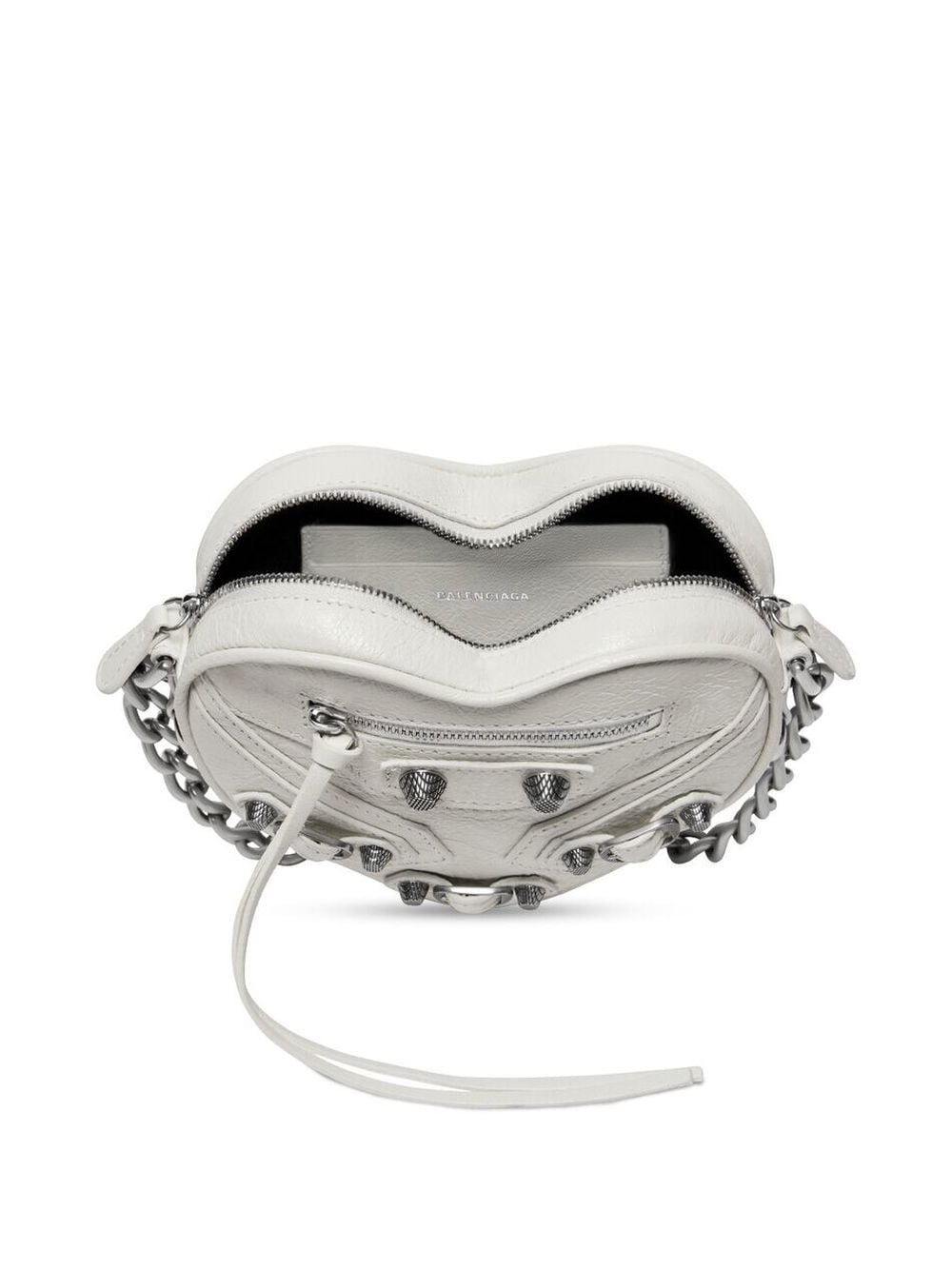 Balenciaga delves further into a Y2K aesthetic, by reimagining its signature Le Cagole bag in a charming heart shape. The dainty accessory boasts all of the original silhouette’s detailing, like the studded details at the front.