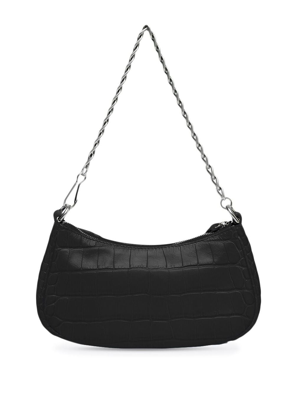 • Le Cagole mini bag from BALENCIAGA featuring black, calf leather, embossed crocodile effect, crystal buckle detail, crystal embellishment, top zip fastening, main compartment, internal card slots, single chain-link top handle and adjustable shoulder strap. POSITIVELY CONSCIOUS: We’ve partnered with Good On You — an ethical agency that rates how sustainably brands perform across various people, planet and animal welfare criteria. This product comes from a Conscious brand that performs well in relation to their impact on the planet, for example ensures the use of materials that limit the amount of chemicals, water and wastewater involved in production processes..