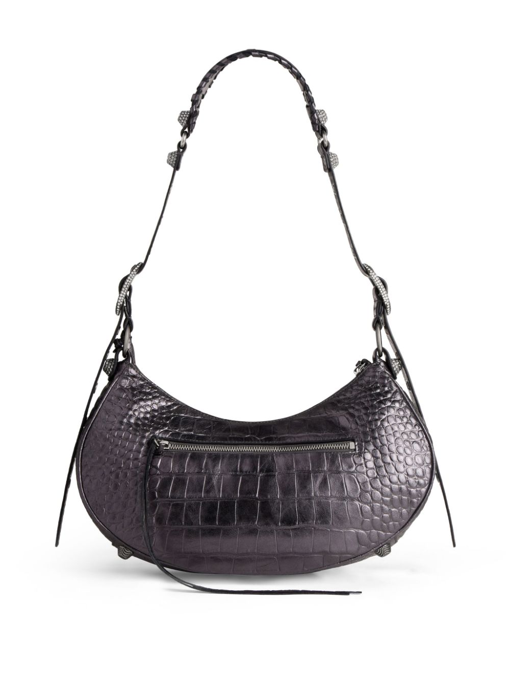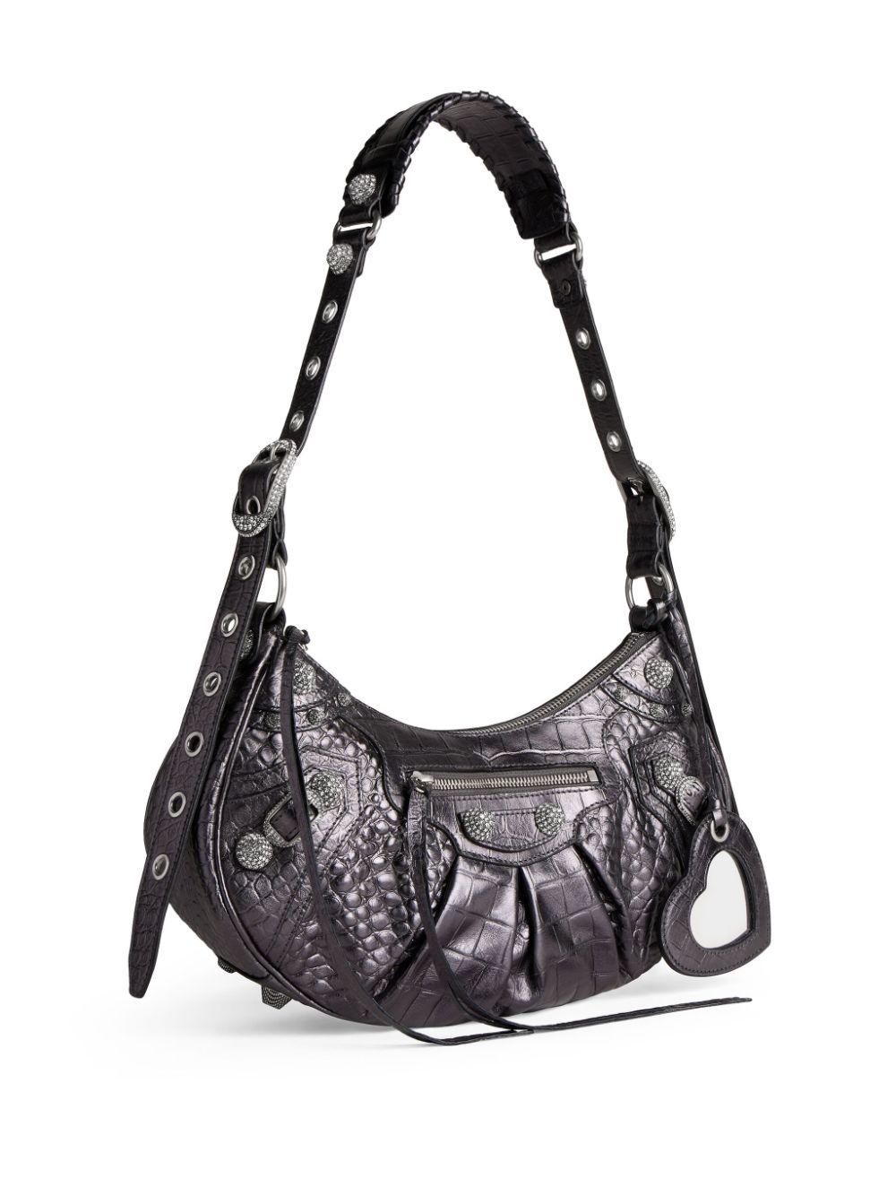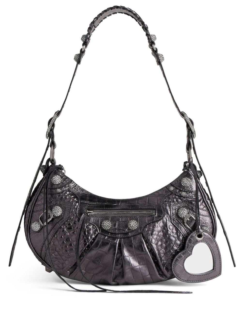 Balenciaga presents a new silhouette in the form of the Le Cagole S shoulder bag. Crafted from croc-effect leather in a gunmetal hue, this compact accessory features elements from the brand’s iconic Neo Classic silhouette, including decorative buckles, flat studs and a whipstitch-detailed adjustable strap.