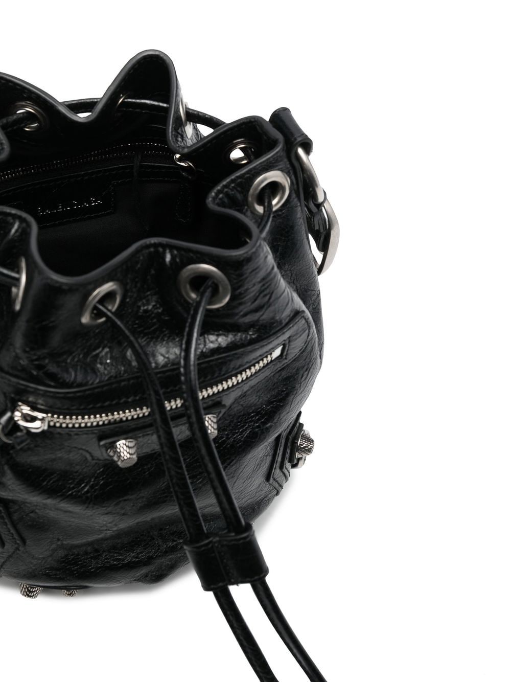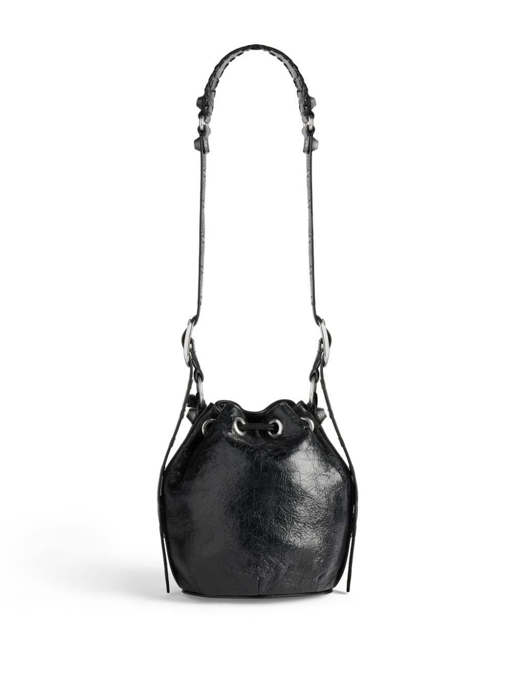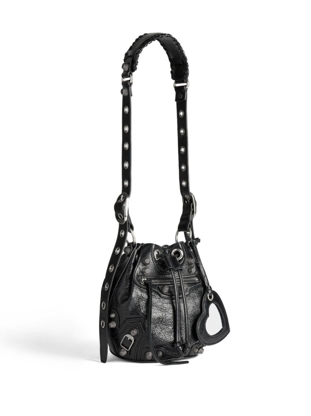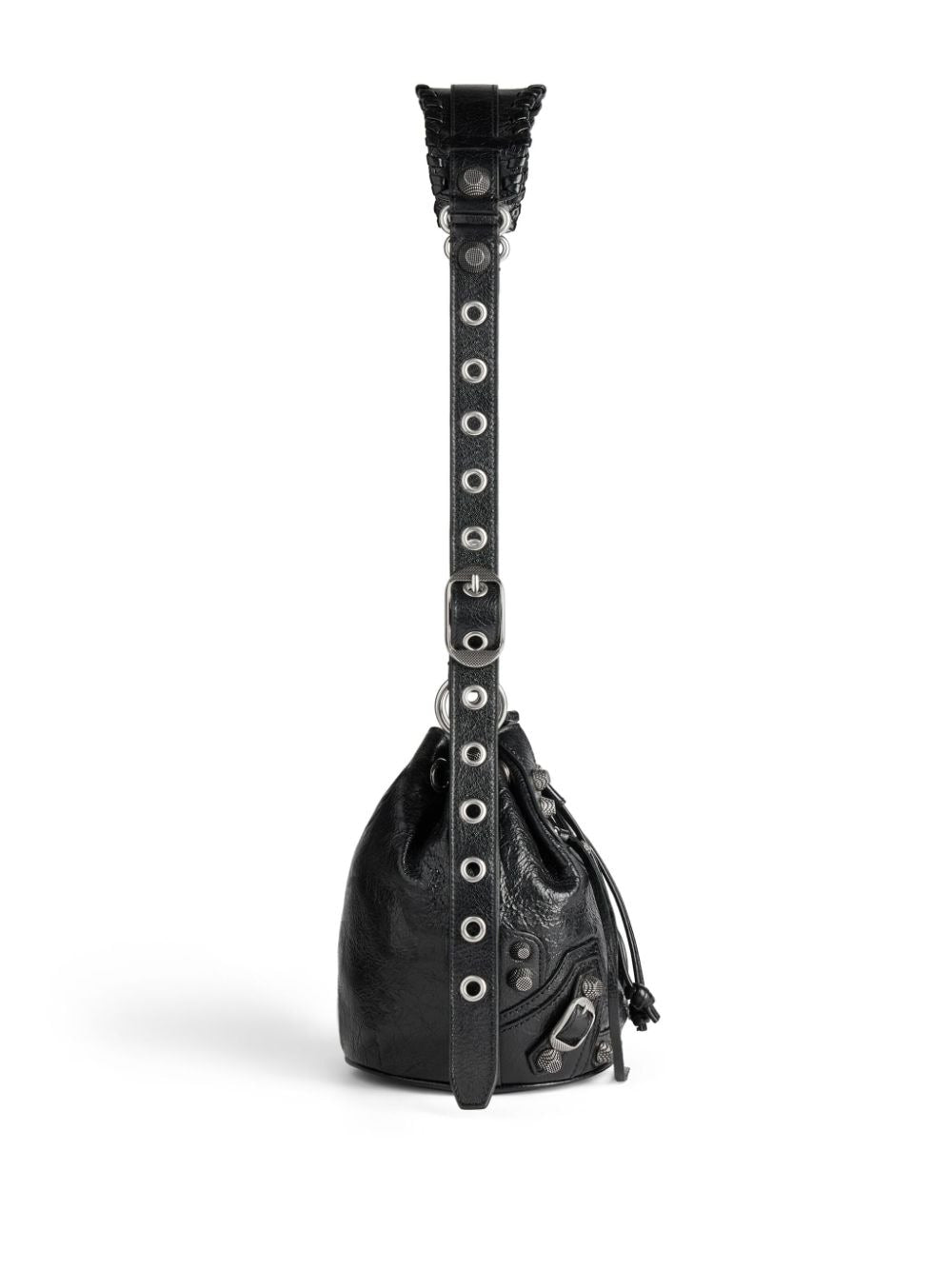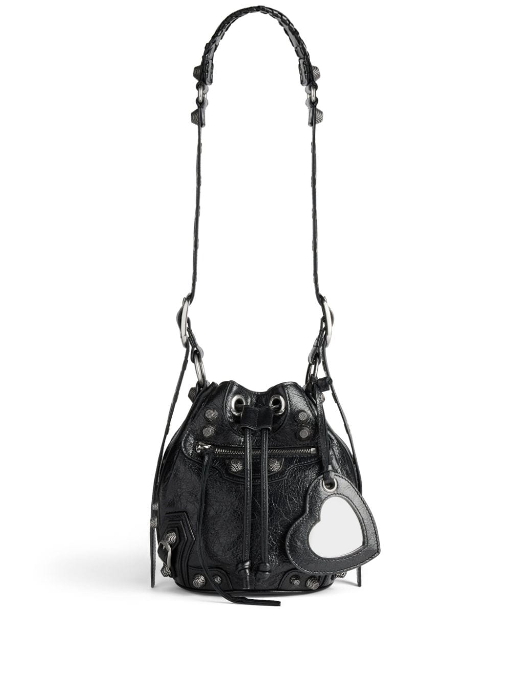 First appearing in Balenciaga’s pre-Fall 2021 show, Balenciaga presents its popular ‘Le Cagole’ bag in an XS size and black colourway for AW22. Crafted from calf leather, this compact accessory features elements from the brand’s iconic Neo Classic silhouette, including decorative buckles, flat studs and a whipstitch-detailed adjustable strap. The design includes the signature heart-shaped mirror and zipped cardholder synonymous with the style.