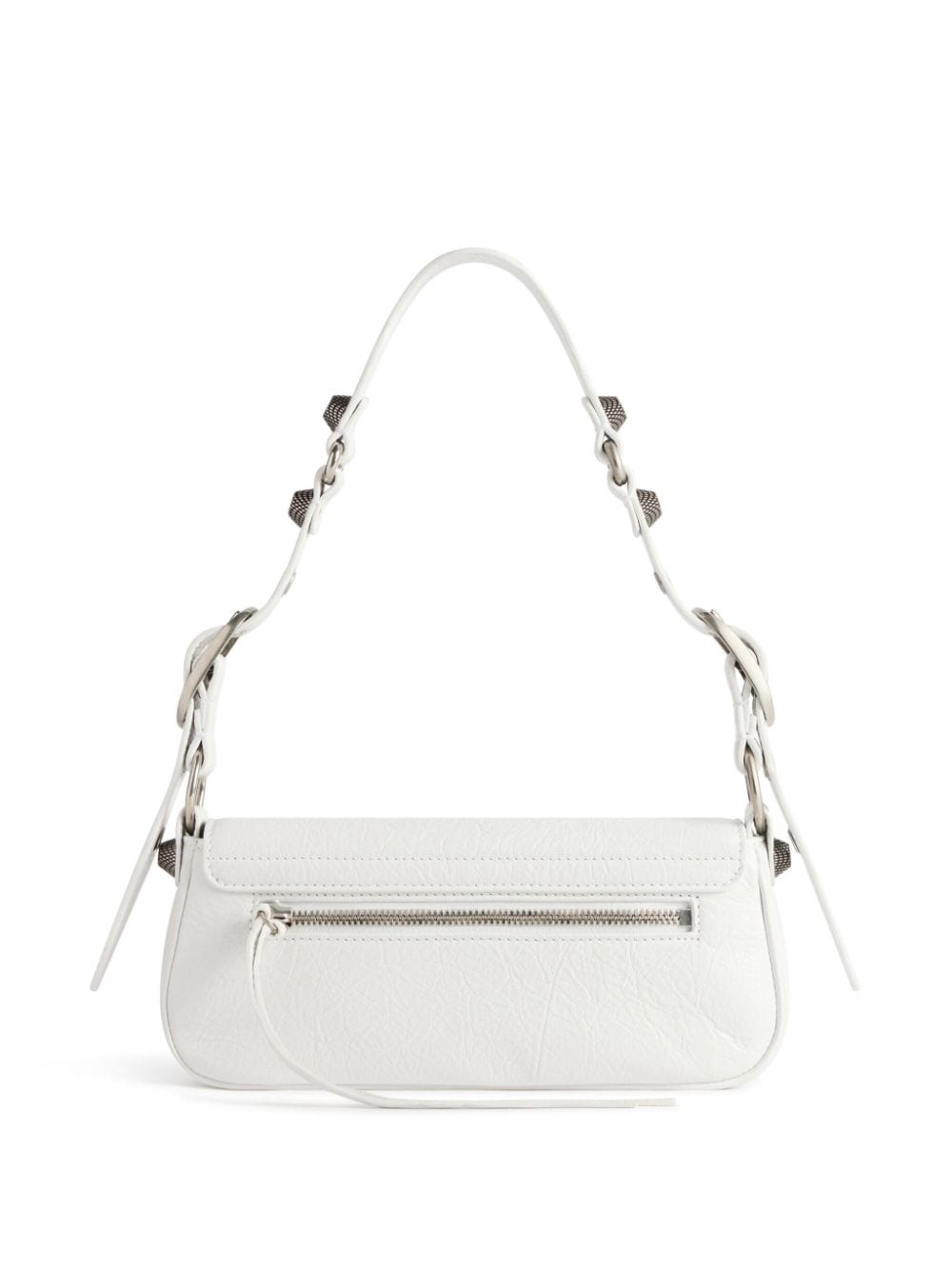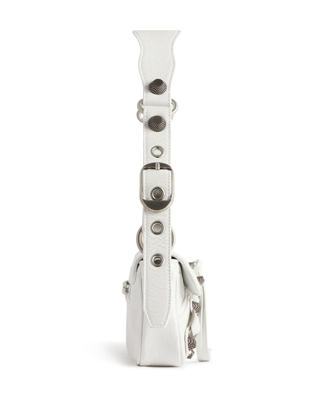 Taking its name from the French term for a cool and confident girl from Marseille, Balenciaga’s white XS Le Cagole bag is a refreshed riff on the archival Motorcycle family – the signature studs, eyelets and belts are a carryover from the original 2001 design.