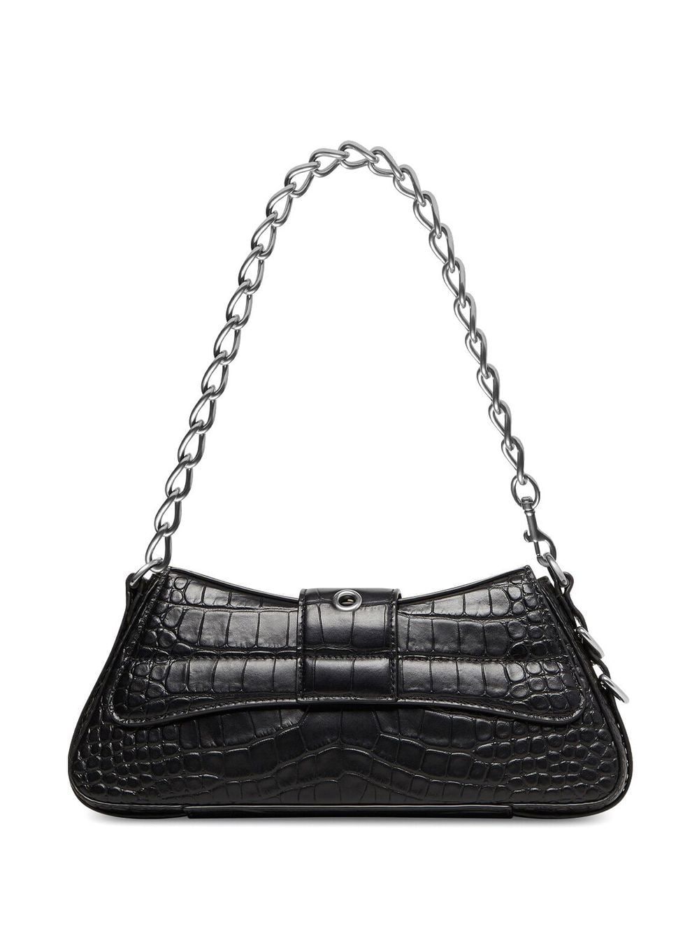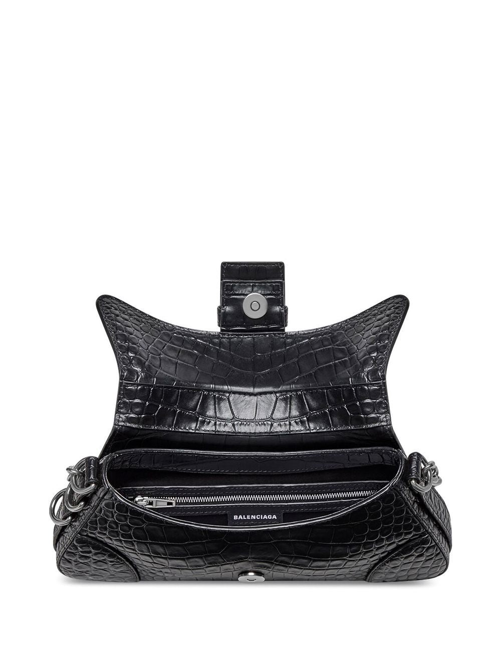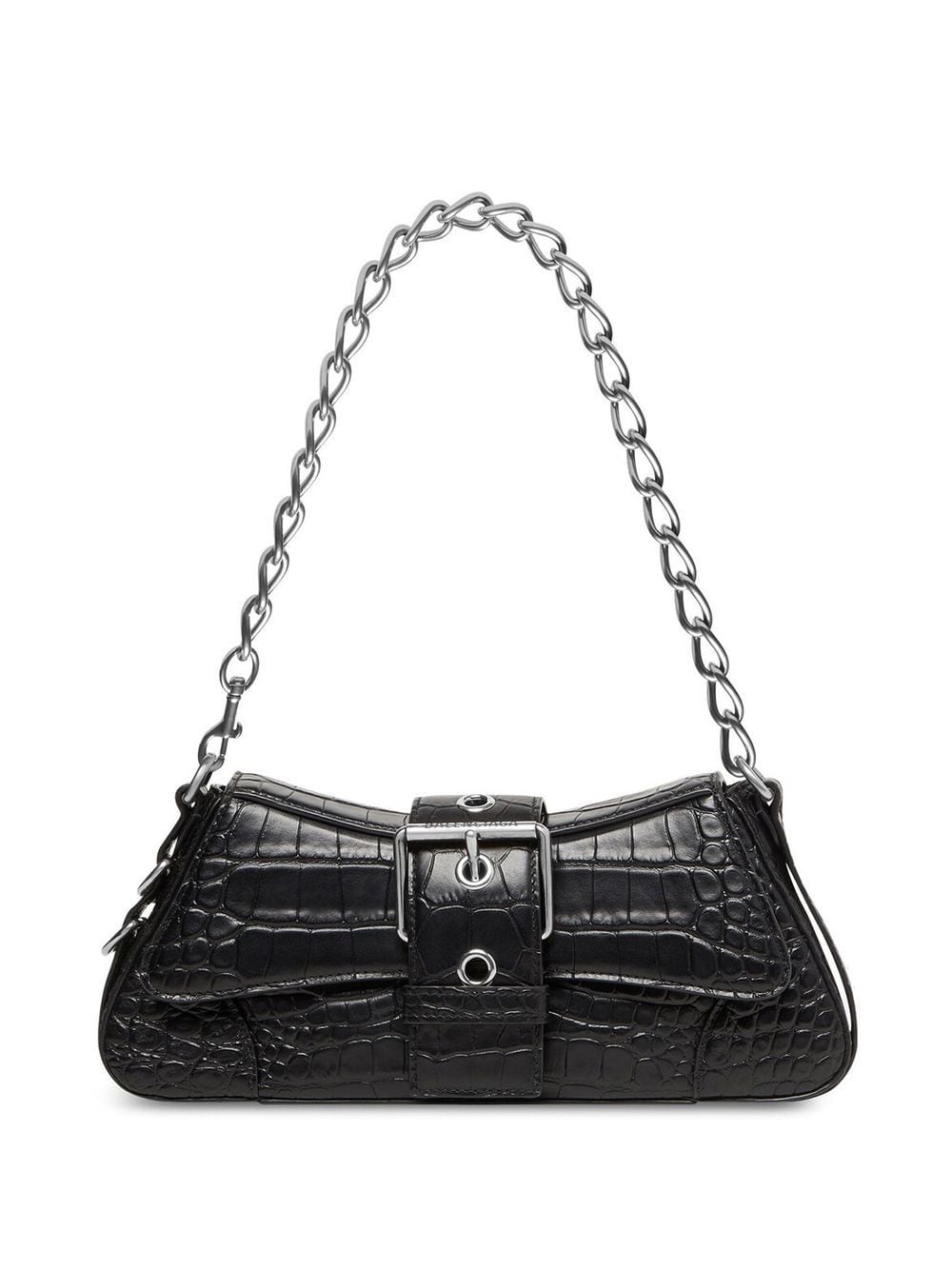 Reimagining their ’90s style, Balenciaga introduces the Lindsay shoulder bag for AW22. This bag is defined by its curved body and a large decorative buckle. Presented here in a crocodile-effect, this piece offers a contemporary take on the brand’s signature silhouette.