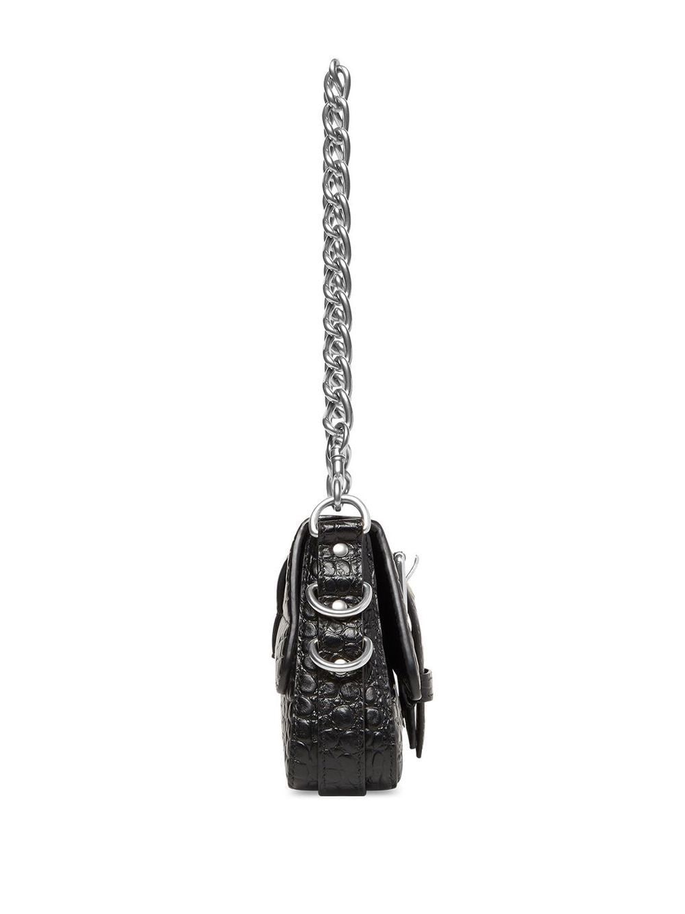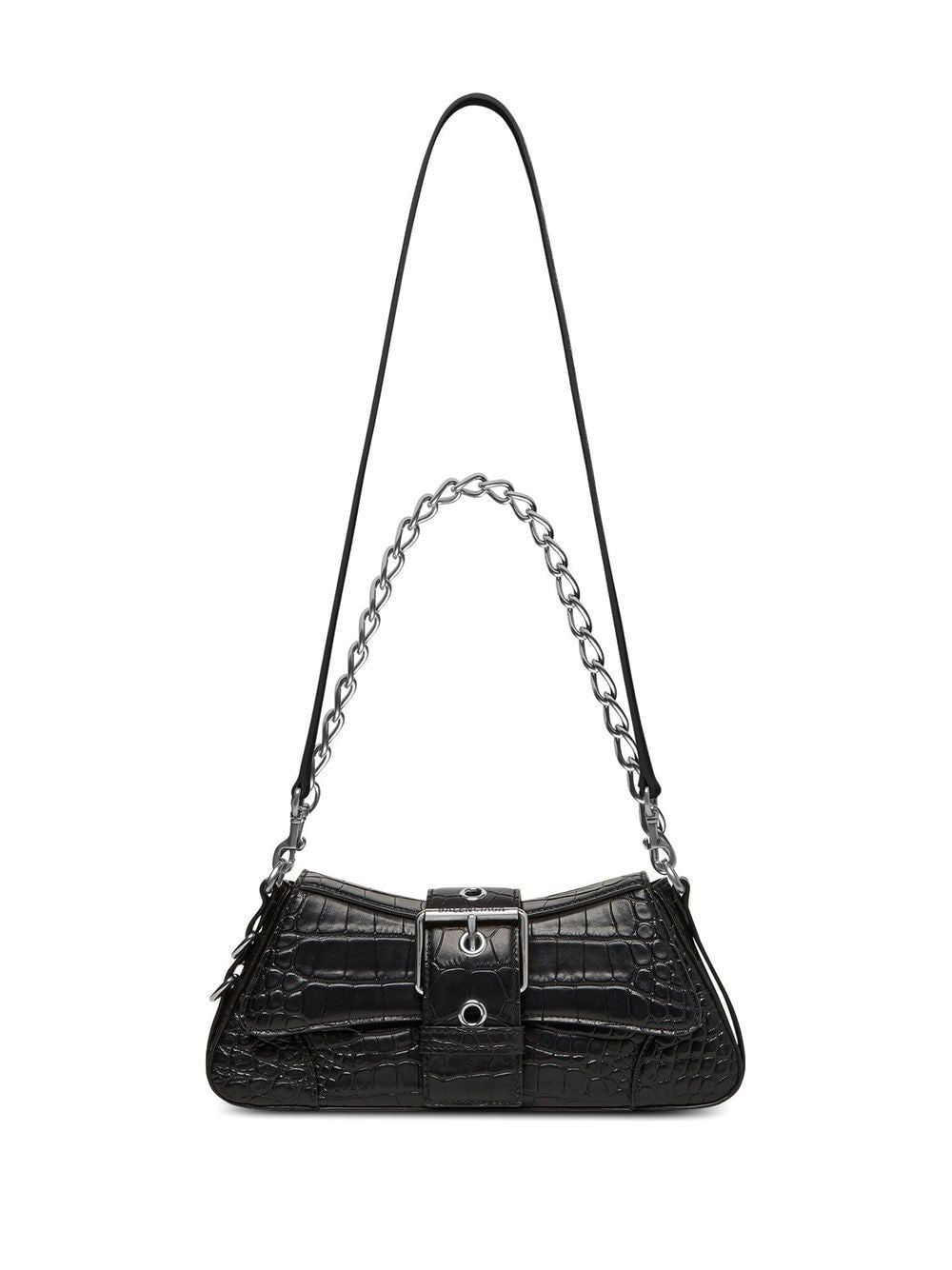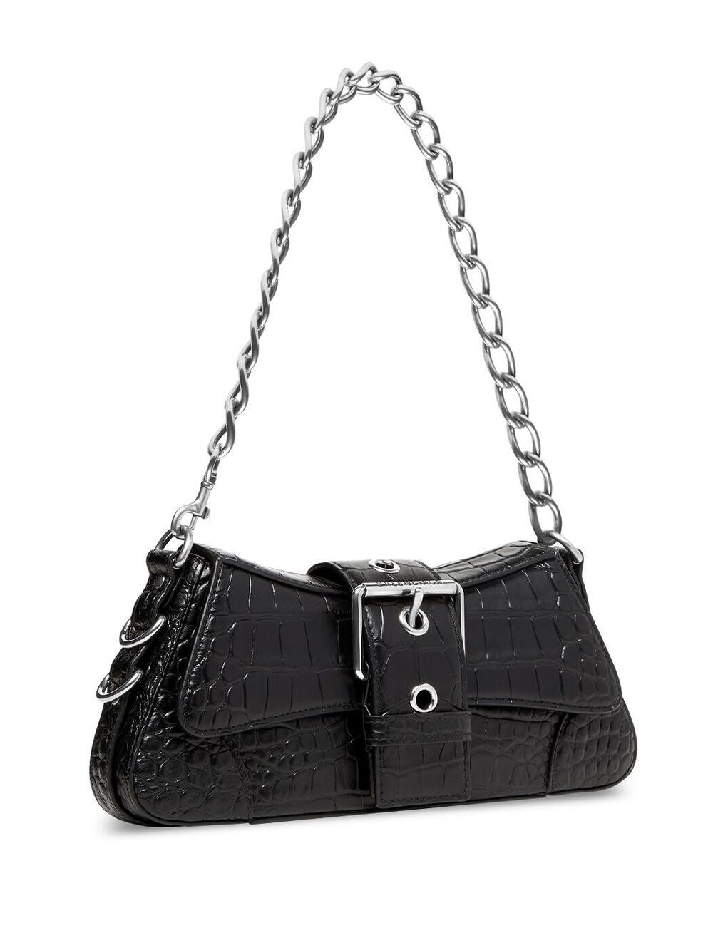 Reimagining their ’90s style, Balenciaga introduces the Lindsay shoulder bag for AW22. This bag is defined by its curved body and a large decorative buckle. Presented here in a crocodile-effect, this piece offers a contemporary take on the brand’s signature silhouette.