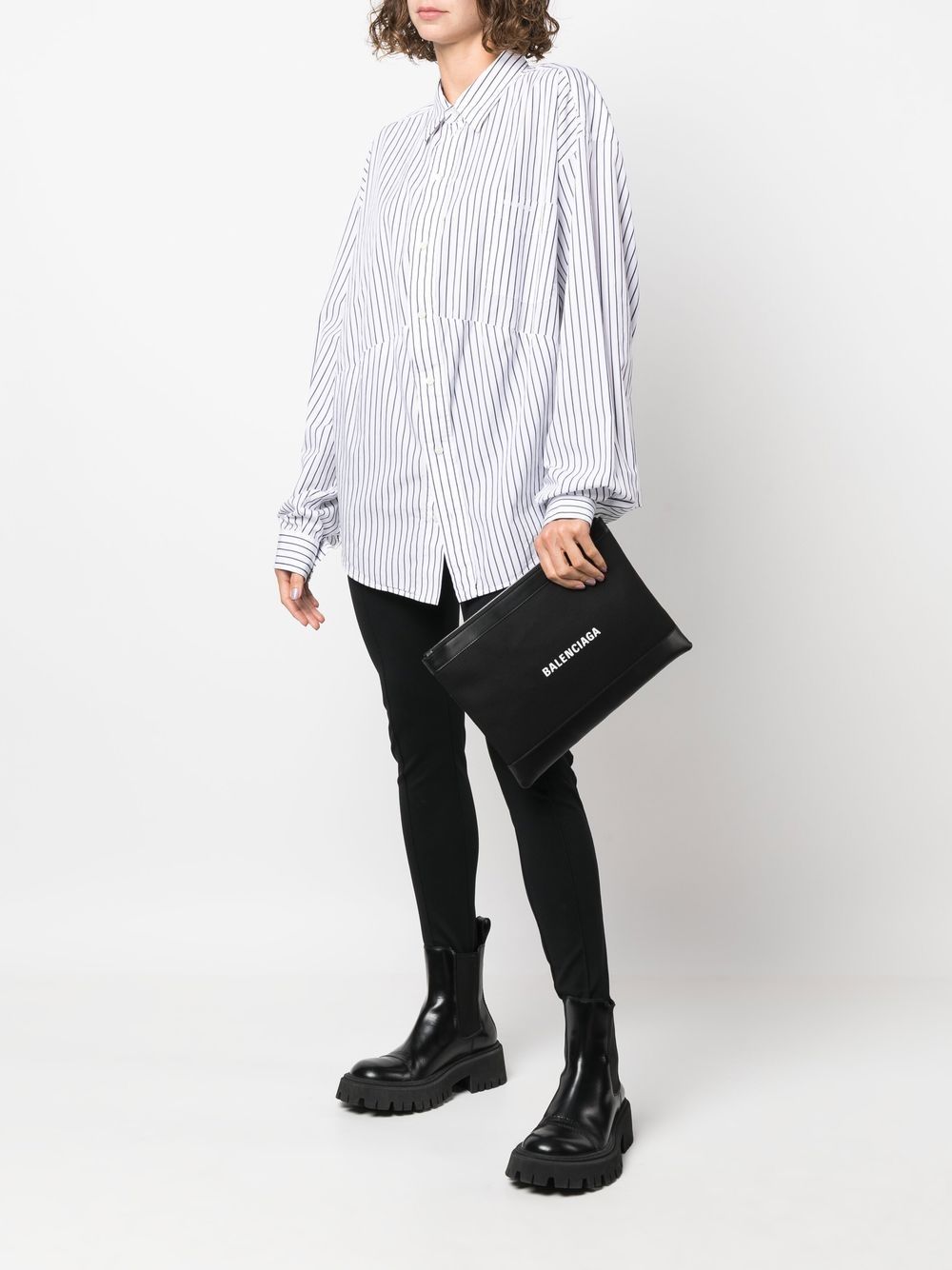 Balenciaga’s clutch is a love letter to understated design. This black iteration is made from croc-effect leather and minimally decorated with a logo print at the front.