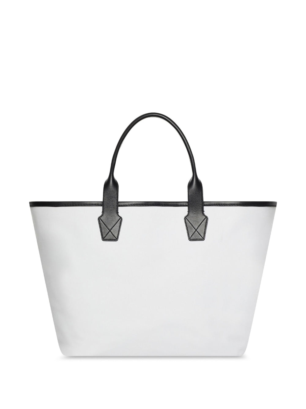 • Balenciaga’s ‘Jumbo’ tote celebrates the brand in big, bold lettering at the front, accompanied by the ‘BB’ logo. Made from cotton canvas with contrasting leather handles, it has an open top and a flat zipped pocket inside.