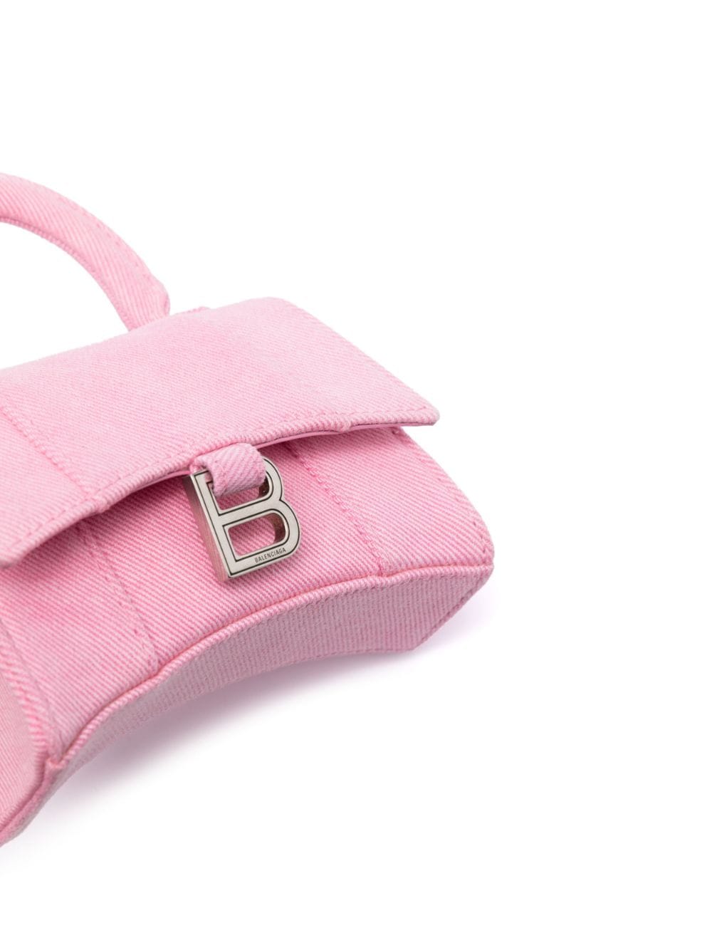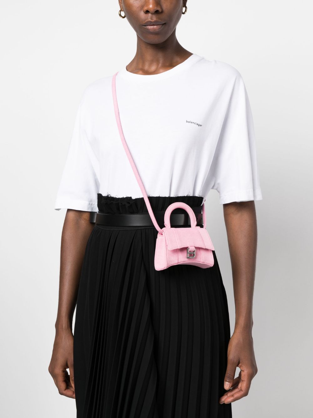 First launched in 2019, Balenciaga’s Hourglass tote bag has been reimagined in various sizes and hues. This mini iteration is crafted from pink denim and finished with the hallmark B-shaped logo plaque at the front.