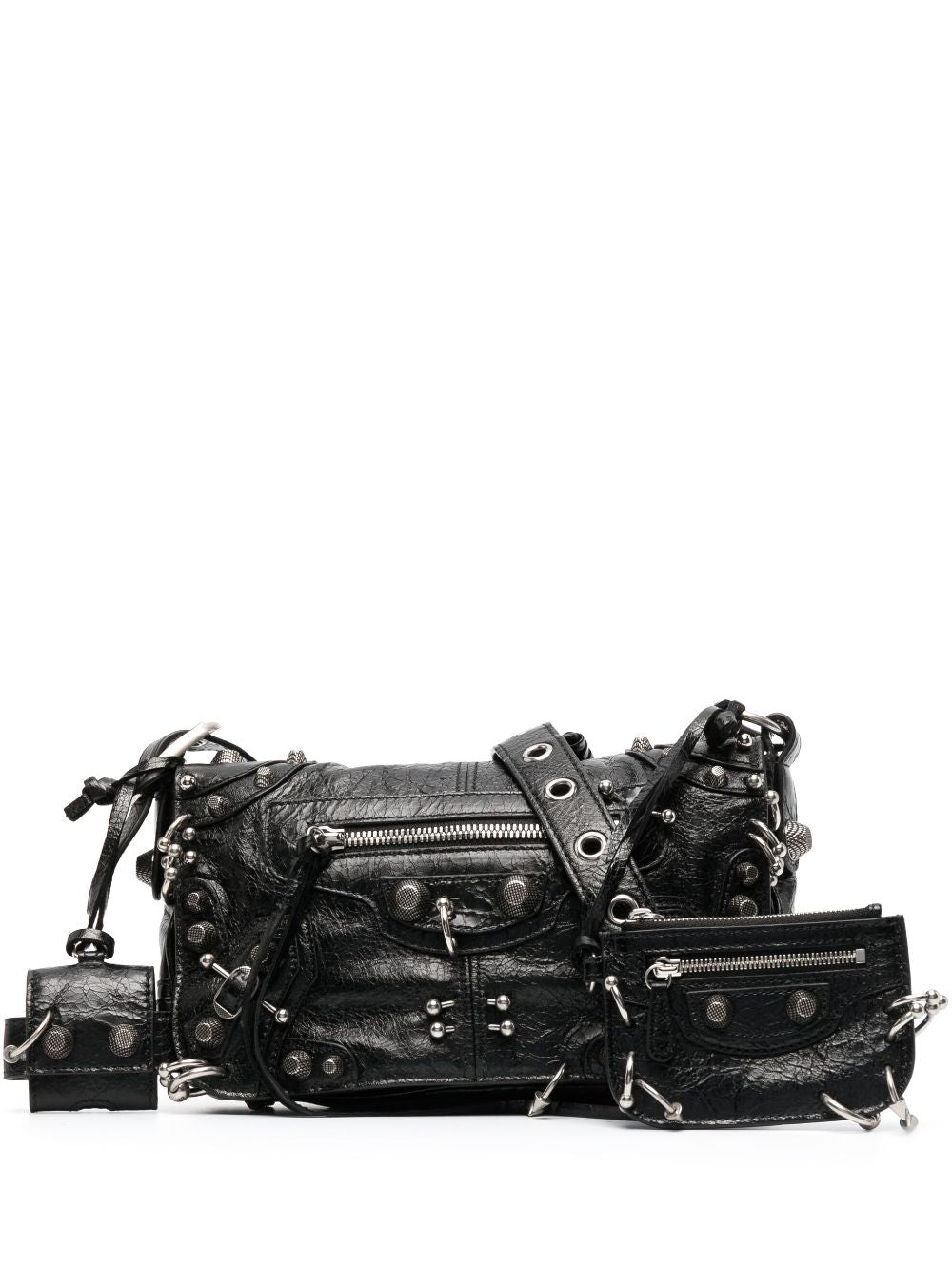 Balenciaga’s distinctive approach to minimalist design is showcased on this shoulder bag from the SS23 collection. Featuring stud embellishment in silver-tone hardware across the accessory, it has a contemporary, edgy feel.