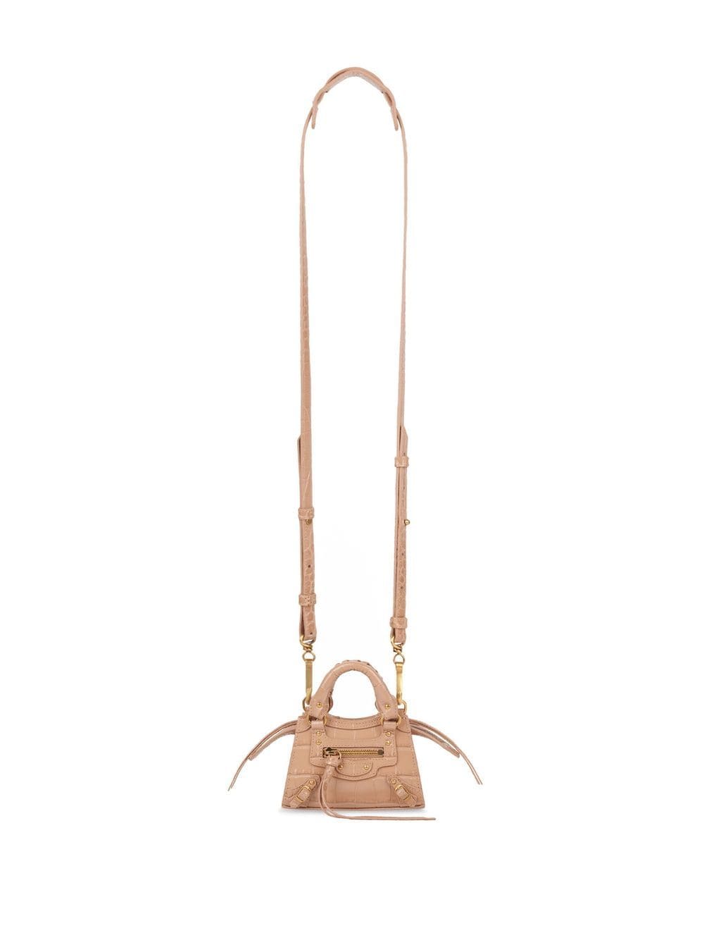 Balenciaga’s Neo Classic City bag debuted over 20 years ago and is still one of the brand’s best-loved designs. Crafted from calf leather in a beige hue, this ‘super nano’ iteration is detailed with signature elements of the style, including buckled tabs, whipstitched top handles and a front zip-fastening pocket.