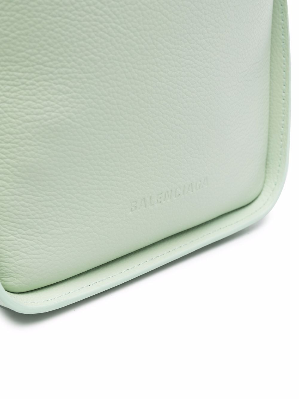 Simple and functional, Balenciaga’s Tool 2.0 tote bag is presented here in a sage-green hue. This minimal design features a roomy interior that is complemented by a removable pouch for added storage space