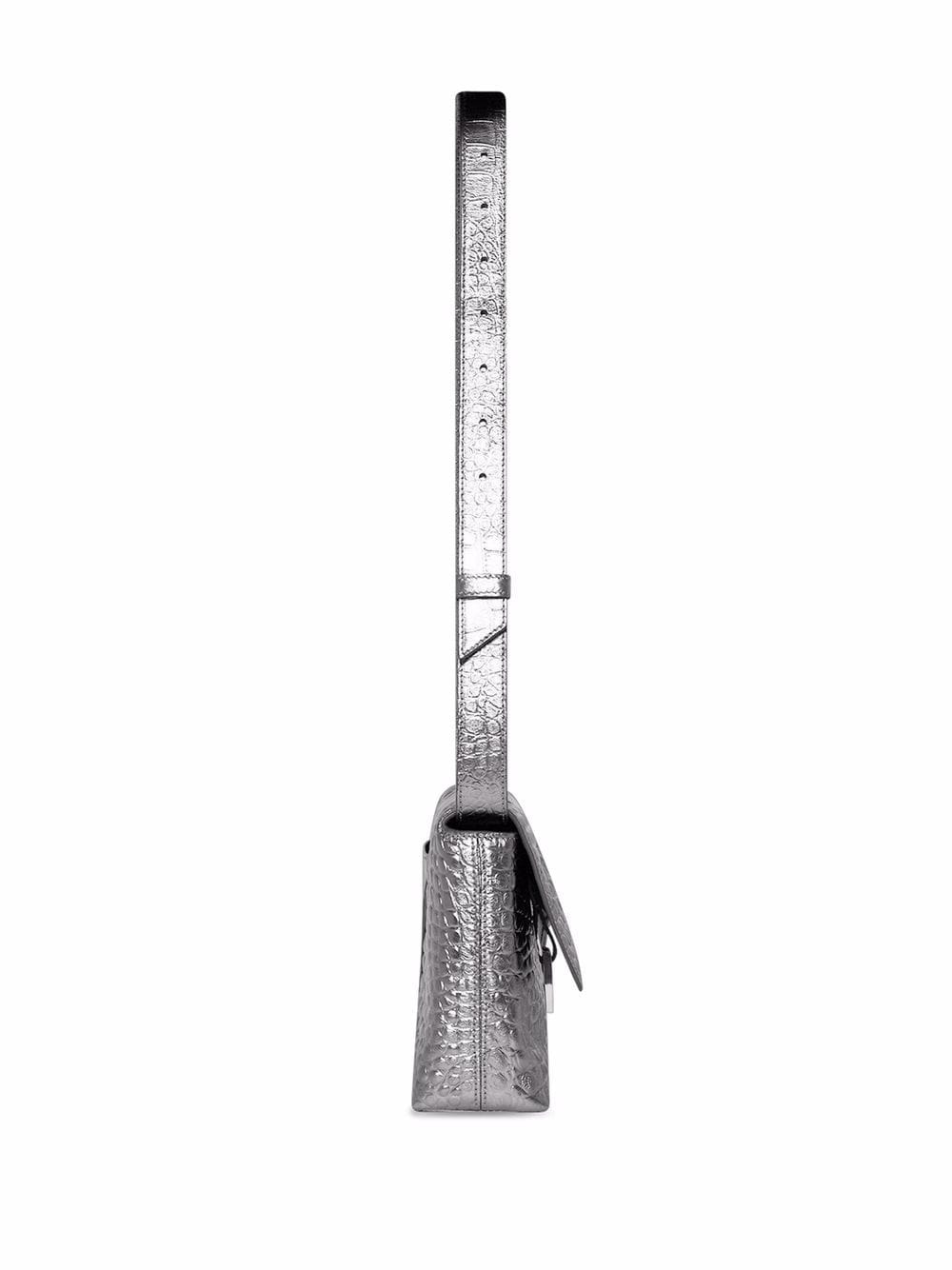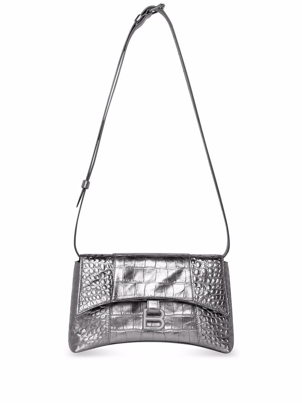 Balenciaga’s coveted Hourglass silhouette is reinterpreted for SS22. The Treize XS shoulder bag shares the same curved base and signature ‘B’ logo charm as the Hourglass, however, the newer style is designed with a slightly softer structure and swaps the top handle for a detachable shoulder strap.