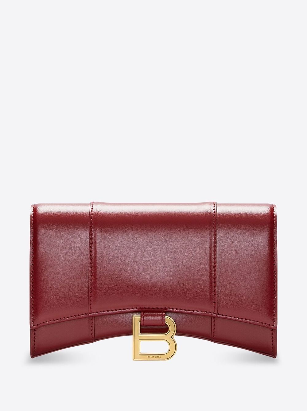 In honour of Valentine’s Day ’22, Balenciaga presents a capsule collection of pieces that subtly reference the holiday of love. The brand’s iconic Hourglass bag is realised in a sensual, lipstick-red hue and features the signature ‘B’ logo charm in a gold-tone finish. A detachable chain-link shoulder strap completes the design.