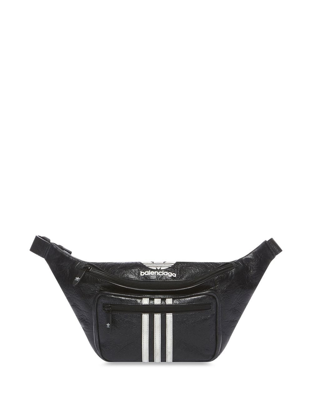 Balenciaga taps adidas to design this belt bag. Crafted from cracked lambskin, it’s accented with the sportswear brand’s trefoil logo above the ‘Balenciaga’ signature. Notice adidas’ tri-stripe pattern at the rear – a rsecond recognisable signature.