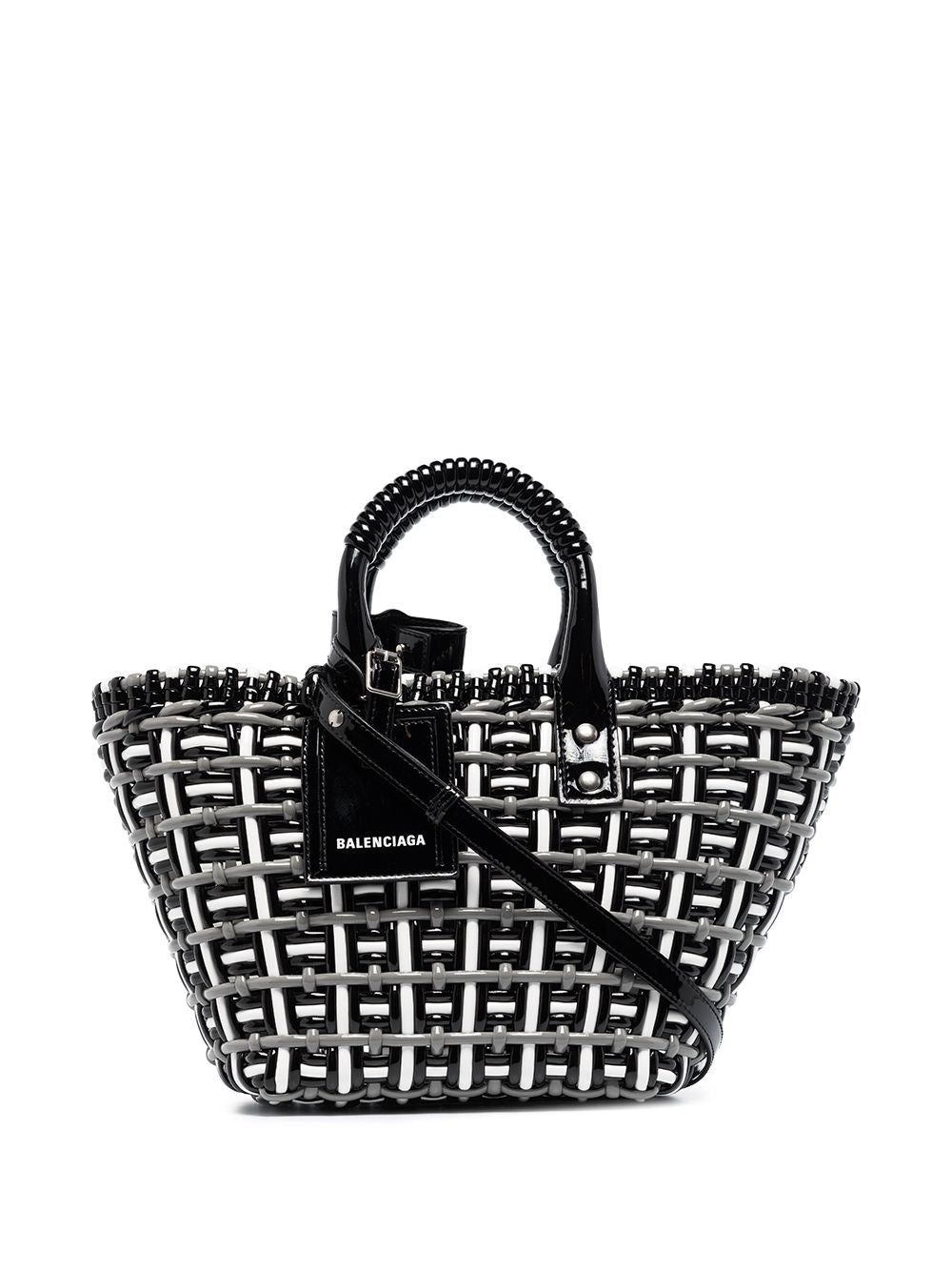 Taking inspiration from bistro chairs, this black tote bag from Balenciaga comes in compact proportions. The woven style has two top handles and an optional shoulder strap.
