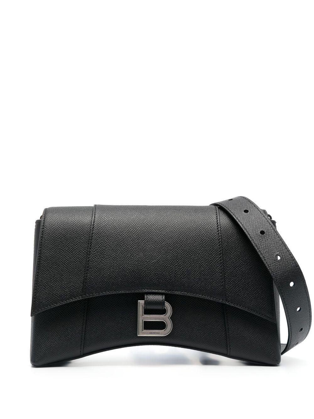 Balenciaga’s iconic Downtown bag is imagined in a classic black leather iteration for SS23, adorned with the brand’s logo plaque.