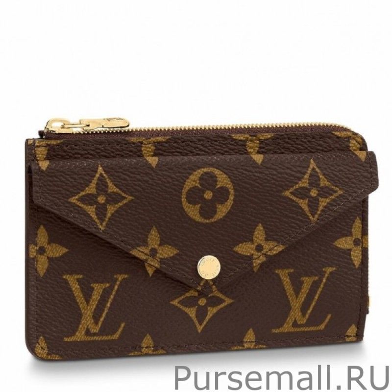 The Card Holder Recto Verso combines Monogram canvas with smart leather trim. It offers an envelopestyle pocket at the front, an inbetween pocket for folded bills, and a zipped compartment with a wide, Lshaped opening for coins. At the back, three card slots complete this ingenious, allinone accessory, which can be hooked onto a bag or belt.