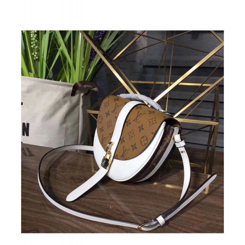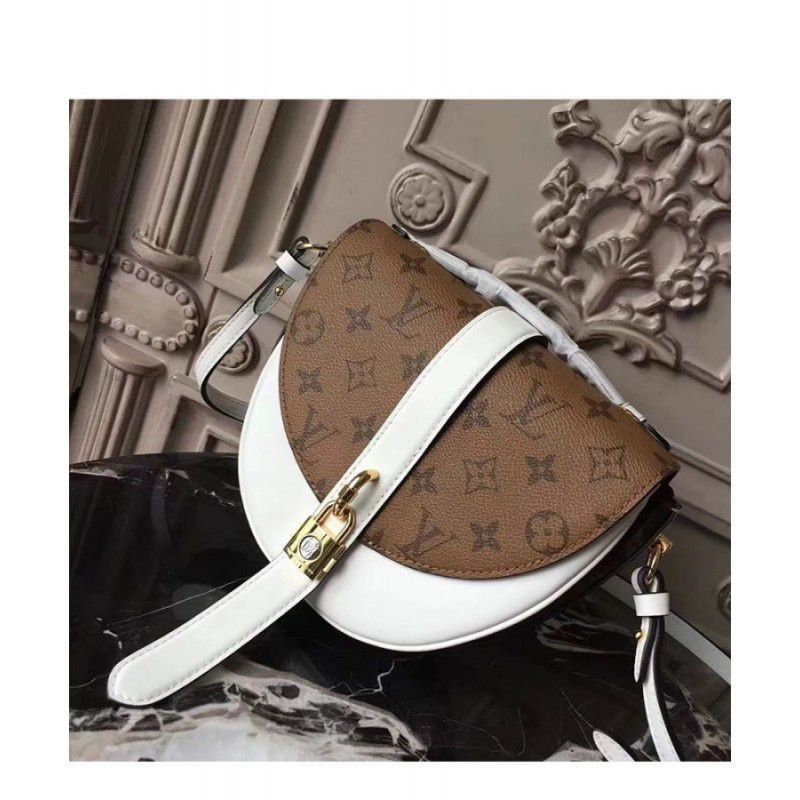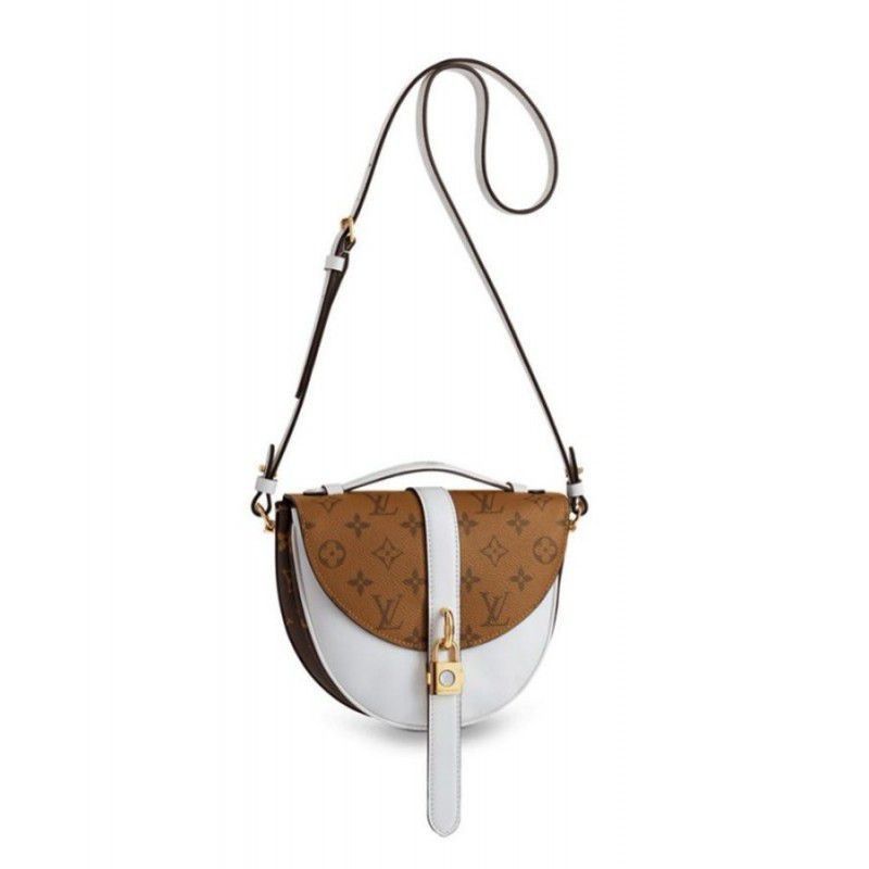Nicolas Ghesquiere updated the Chantilly bag on its 40th anniversary. Made of Monogram and Monogram Reverse canvas trimmed with calf leather, it features a redesigned, embellished padlock. An edgy piece with a bohochic spirit, for day to after dark.