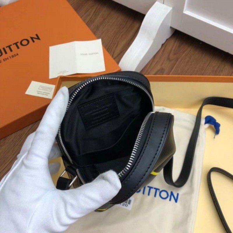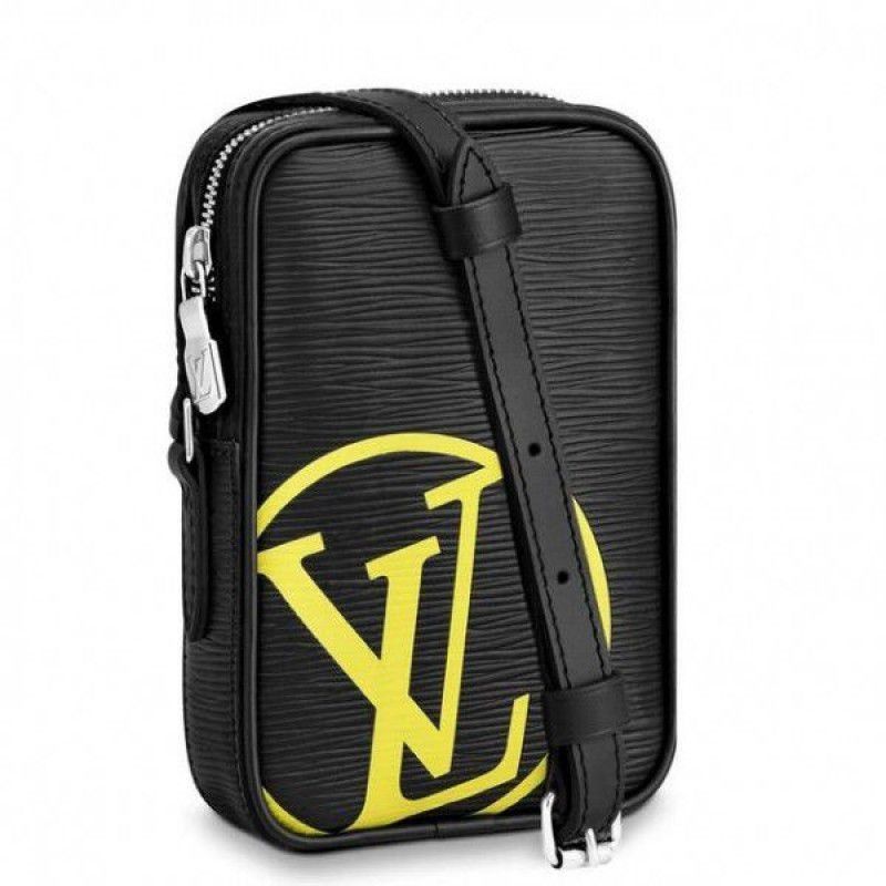 The Danube PM is made from black Epi leather and signed with acidgreen LV Initials for Fall 2019. Compact yet large enough for the essentials, it features an adjustable leather strap for overtheshoulder wear.