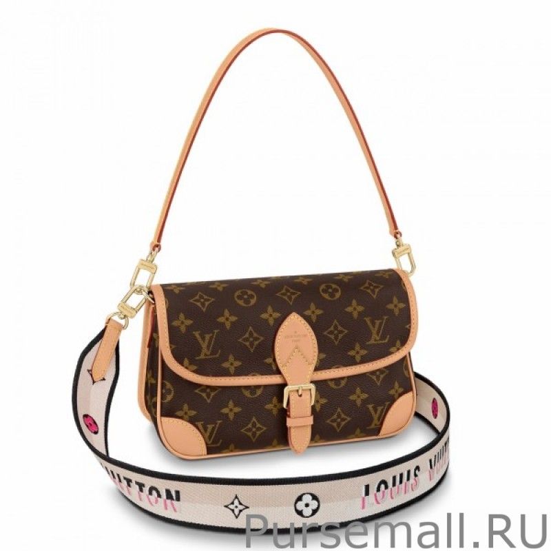 The Diane satchel in Monogram canvas revisits a classic model from the 90s, combining such vintage details as leather corners and an archivalinspired buckle with the modern functionality of smart pockets and a wellorganised interior. The exclusive wide jacquard strap reverses from a bold Louis Vuitton signature to a subtle Monogram Flower motif.