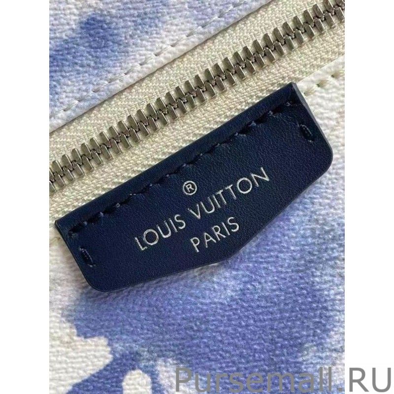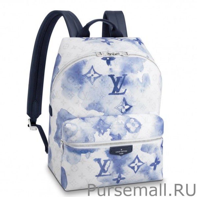 The Discovery Backpack is made from white canvas with Monogram Flowers and LVs in dreamy blue watercolor. Inspired by the classic university backpack, this versatile bag features three inside pockets, including one for an iPad. Two adjustable leather shoulder straps assure carrying comfort.