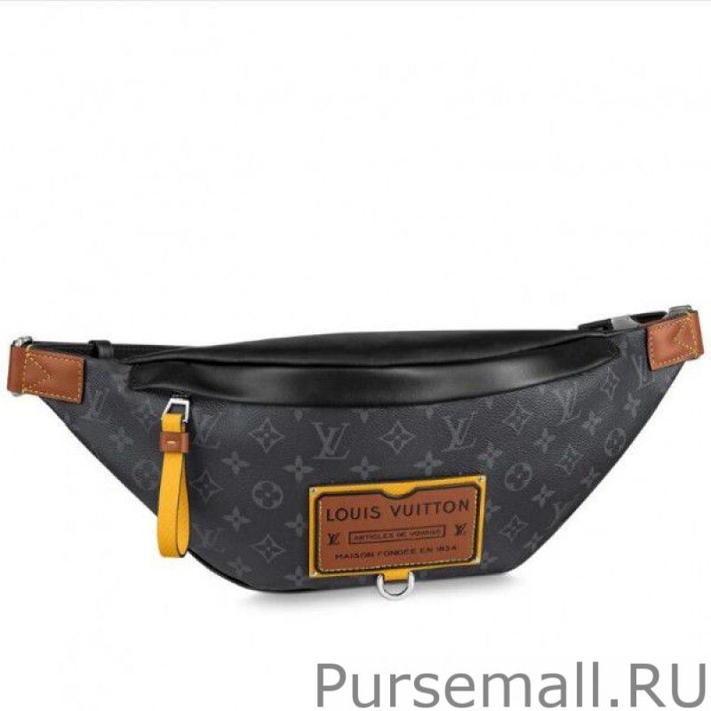The Discovery bumbag is revisited in Monogram Eclipse canvas with an embossed leather patch for the Gaston Labels collection. This special edition was inspired by the vintage luggage labels collected by is grandson, GastonLouis Vuitton. This model features an adjustable belt and multiple zipped pockets to securely hold valuables.