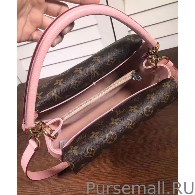 Double V is made from noble fine-grained leather and iconic Monogram canvas. The round and voluptuous shape of the bag is perfectly contrasted by the bold V-shape flap, making the Double V a unique bag. It can be carried by hand or over the shoulder thanks to the removable strap.