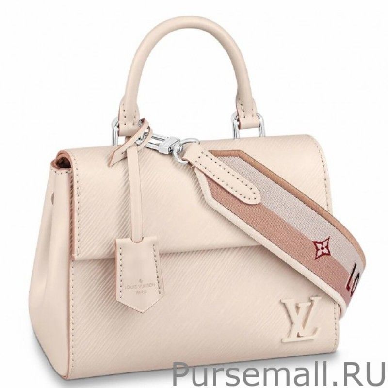 This exclusive Cluny Mini handbag features a reversible jacquard strap: one side displays the Louis Vuitton logo for a statement look; the other shows Monogram Flowers, for a subtle effect. Made from textured Epi leather, the bag also features an LV signature in smooth resin and a contrasting lining. The strap is removable for a more dressedup allure.