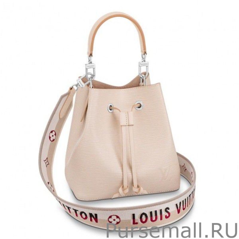 The adorable NeoNoe BB bucket bag now features an embroidered Jacquard strap for stylish shoulder carry. The wide removable strap is reversible: logos on one side, Monogram Flowers on another. Made from grained Epi leather, this compact bag has two inside compartments and a central flat pocket that closes with a press stud.