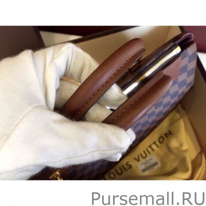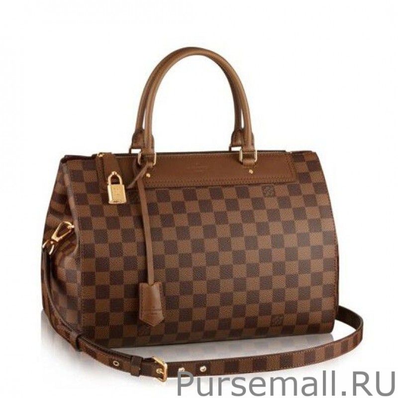 The Greenwich in Damier Ebène canvas combines style and functionality. Its leather trim and golden-finish hardware exude subtle elegance. With a well-organized interior, it can be shoulder or cross-shoulder carried.