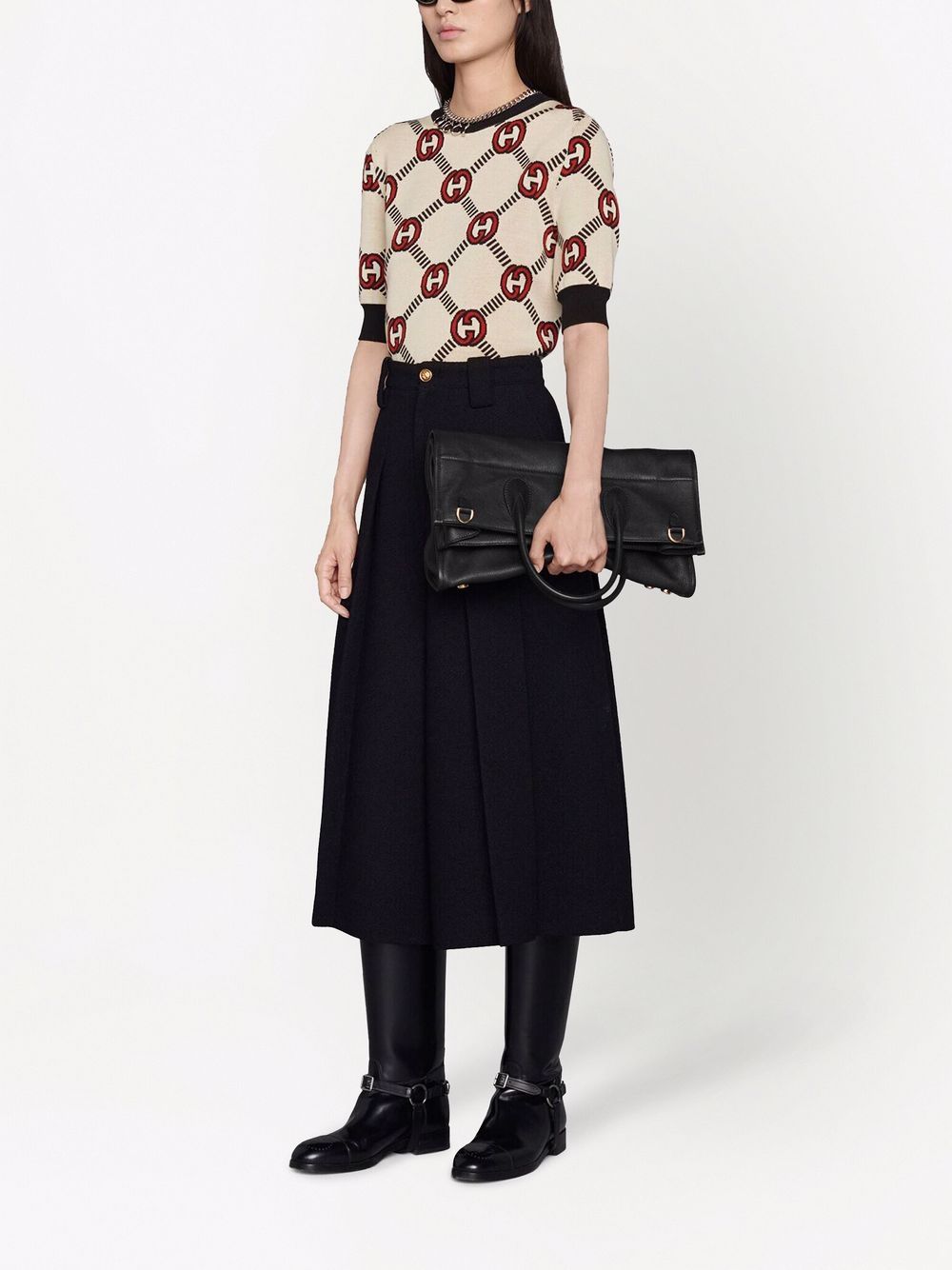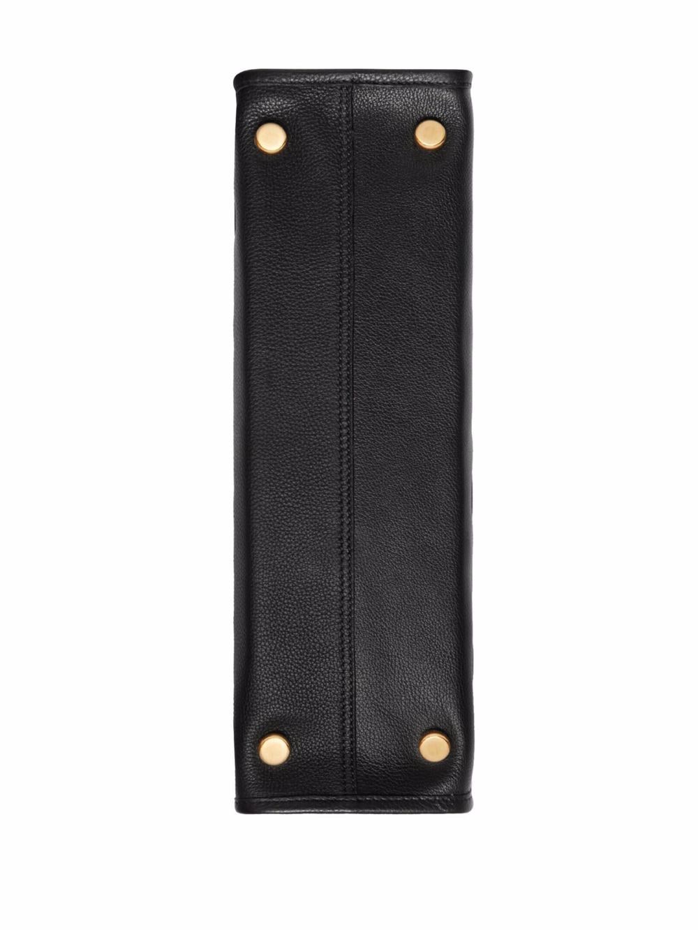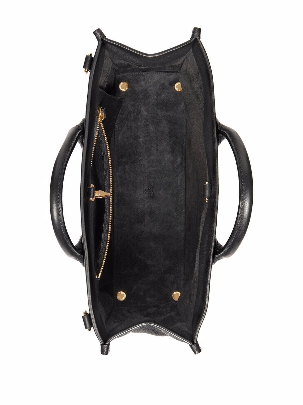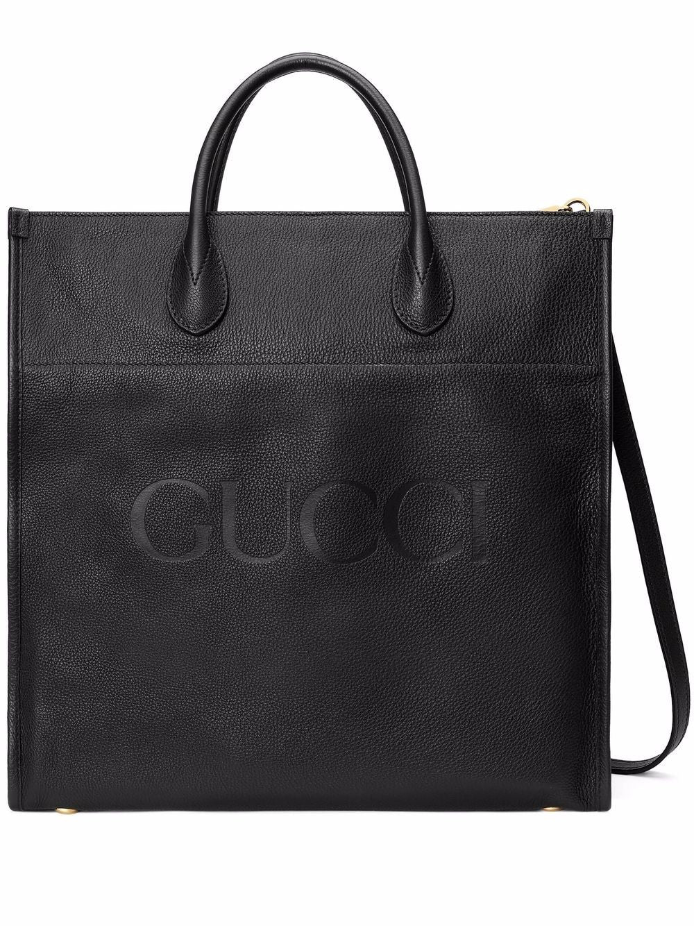 • Focusing on expert craftsmanship rather than extravagant patterns, this Gucci tote is crafted from black leather and simply branded by a debossed logo to the front.