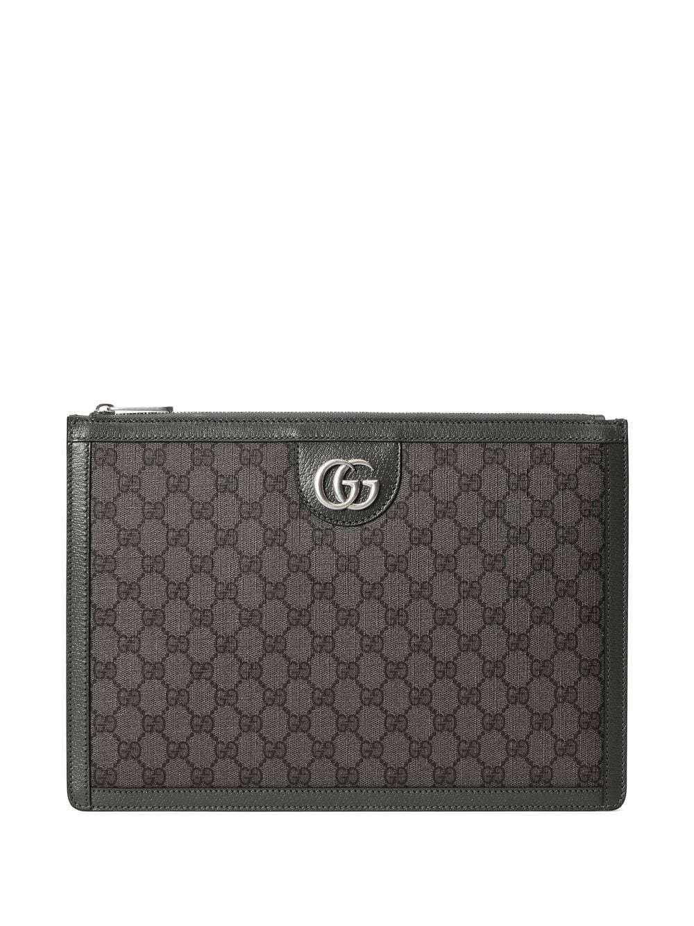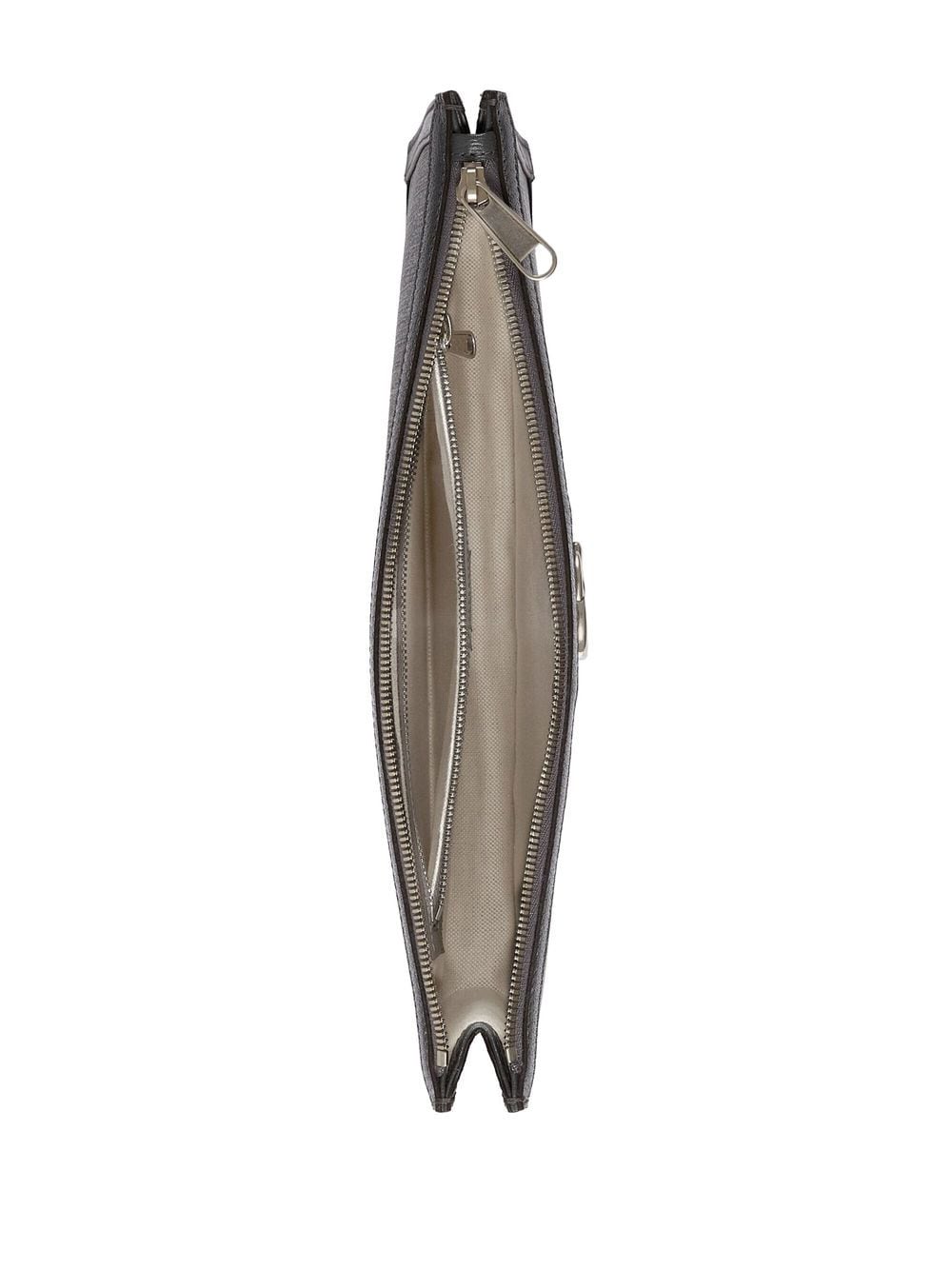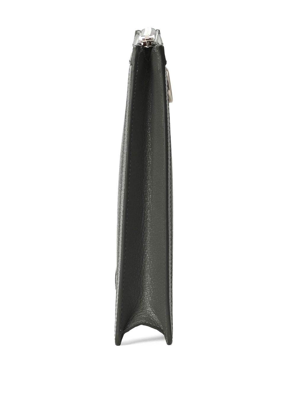 Double G laptop case from Gucci featuring grey, leather, signature Double G logo, classic GG canvas, silver-tone hardware, top zip fastening and internal zip-fastening pocket.