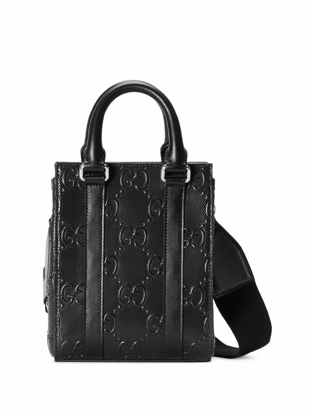 Gucci reimagines its signature GG pattern in a tonal leather construction, adding texture to this mini tote bag through the mixture of embossing and perforating. The compact accessory features a practical detachable shoulder strap for easy carrying.