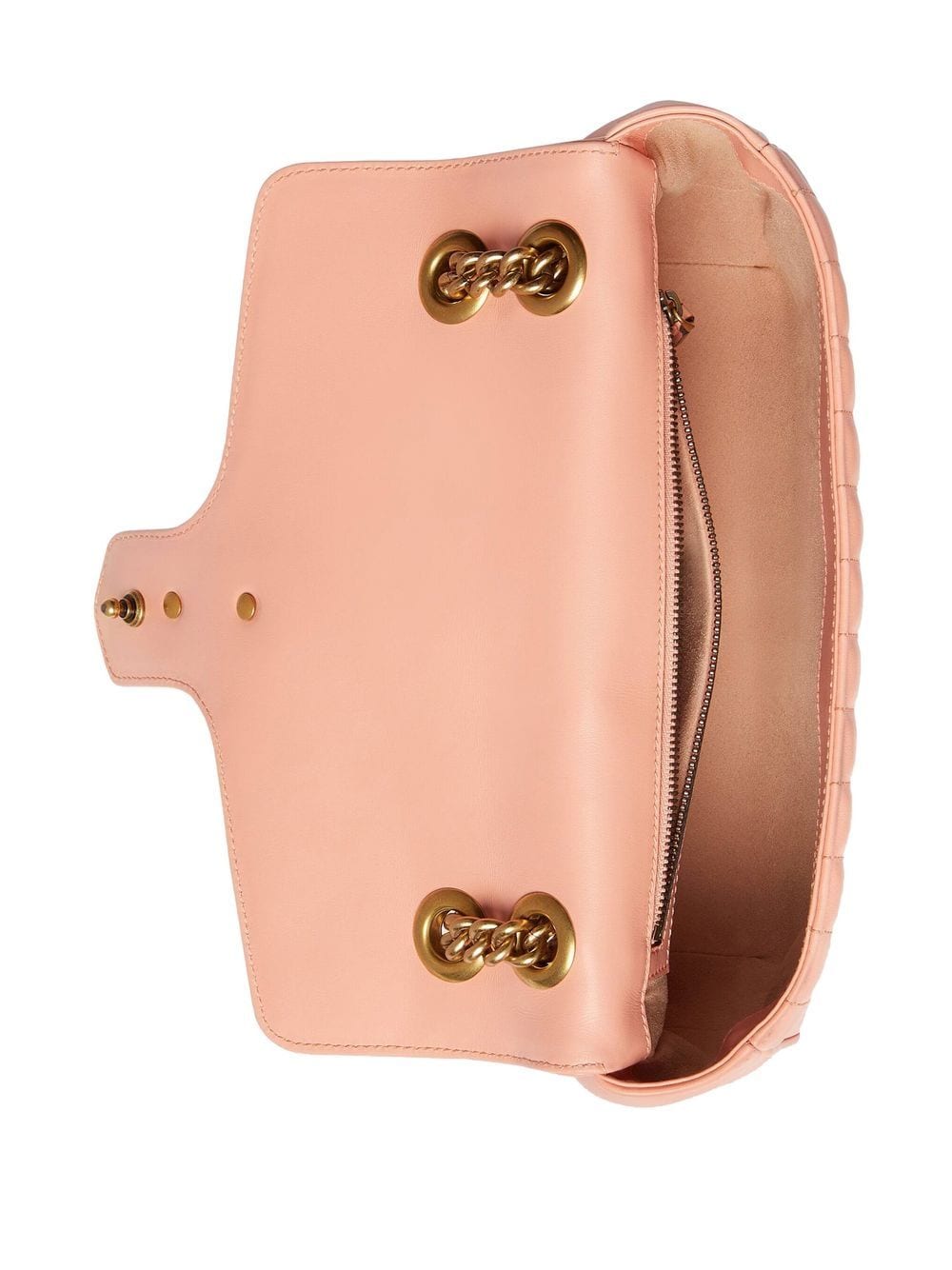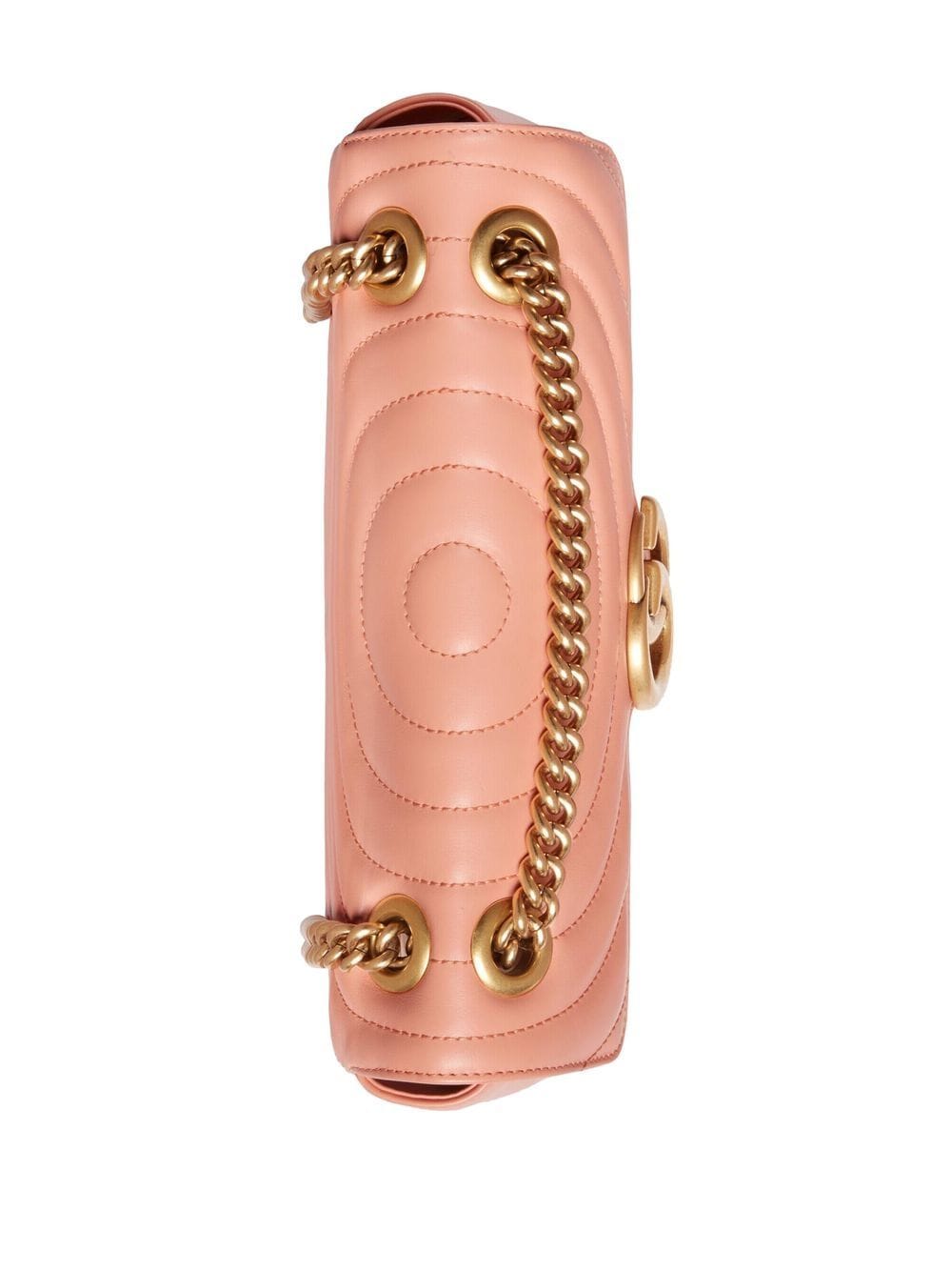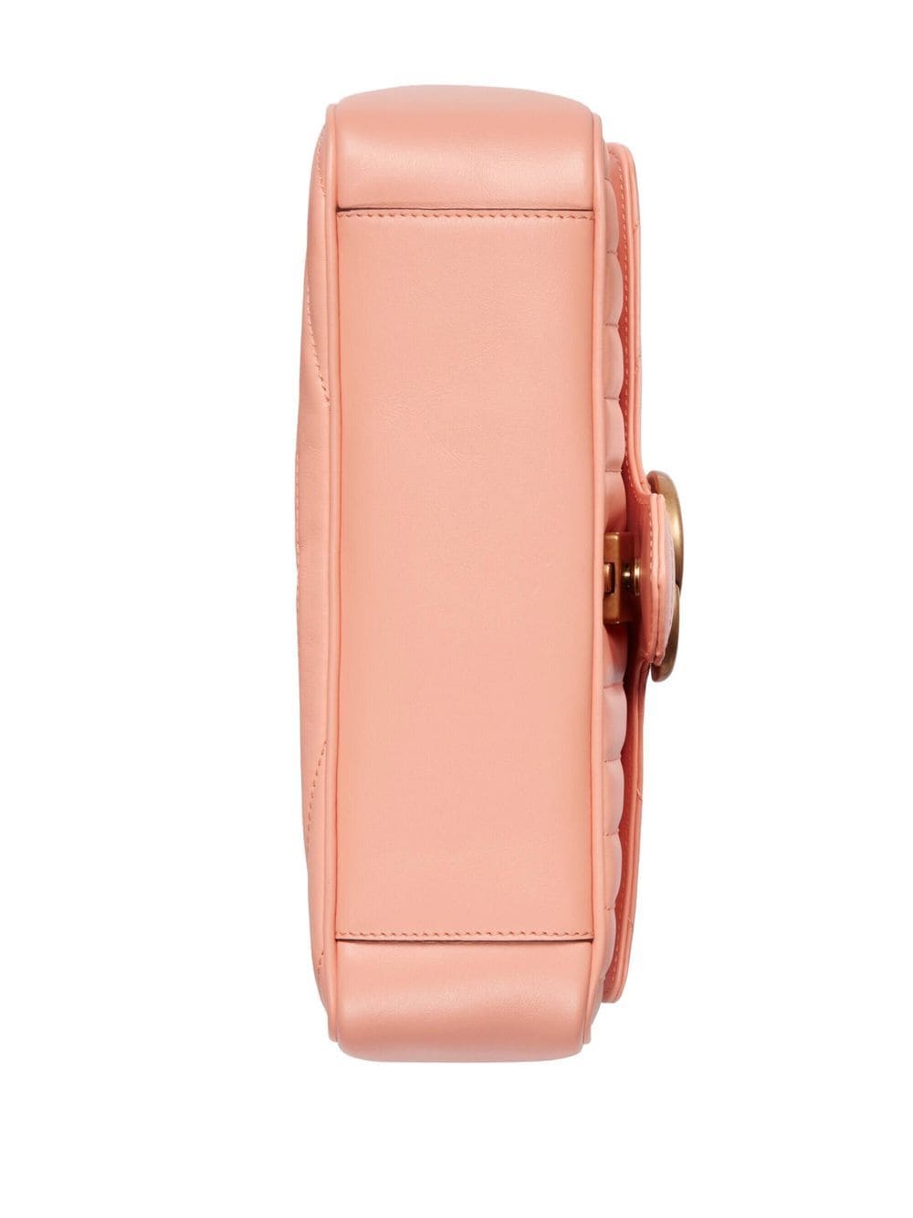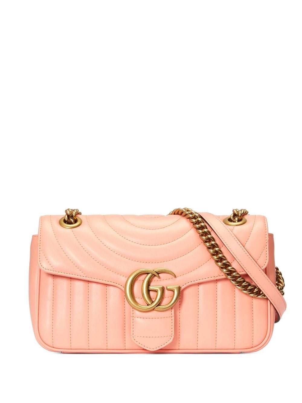 Gucci’s GG Marmont shoulder bag is defined by its signature matelassé effect and Double G harware. For SS23, the iconic accessory is realised in rose pink quilted leather with gold-tone hardware.